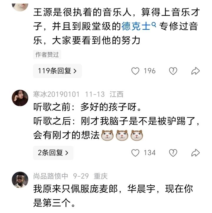 王源到底是在伯克利读的书,还是在德克士进的修? 看到一个王源的采访,被网友的评论笑死了! 王源在采访里说,如果大家喜欢我的歌,就不要因为我是王源而不喜欢我的歌。哪怕对我有偏见,我都接受,但请您在我演唱的这四分钟里,不要有偏见! 说得好像有道理,也很诚恳。但是网友在听了他的歌之后,竟然都是嘲讽他的。看到那些几乎统一的评论,我真的怀疑他在伯克利读过书! 明明在之前,三小只里,他的口碑口才都是最好的,一分开,一上台表演,就变成现在这样了。和他一起易烊千玺都是影帝了,他现在还陷在网友的口水里,无法自拔! 选几条网友的放在下面: 咦,这个不是偏见哦,这歌确实唱的很不对劲啊,感觉气息不稳,上不去又下不来,是不是嗓子生病,没调整好…… 我是因为你唱歌实在难听才不喜欢你的,真心感觉你有点五音不全,华晨宇唱歌有点疯,但是还是可以听出有点功底在,但你呢?首先气上不去,音也唱不上去,声音没特色,可以说一无是处! 我原来只佩服庞麦郎、华晨宇,现在你是第三个……