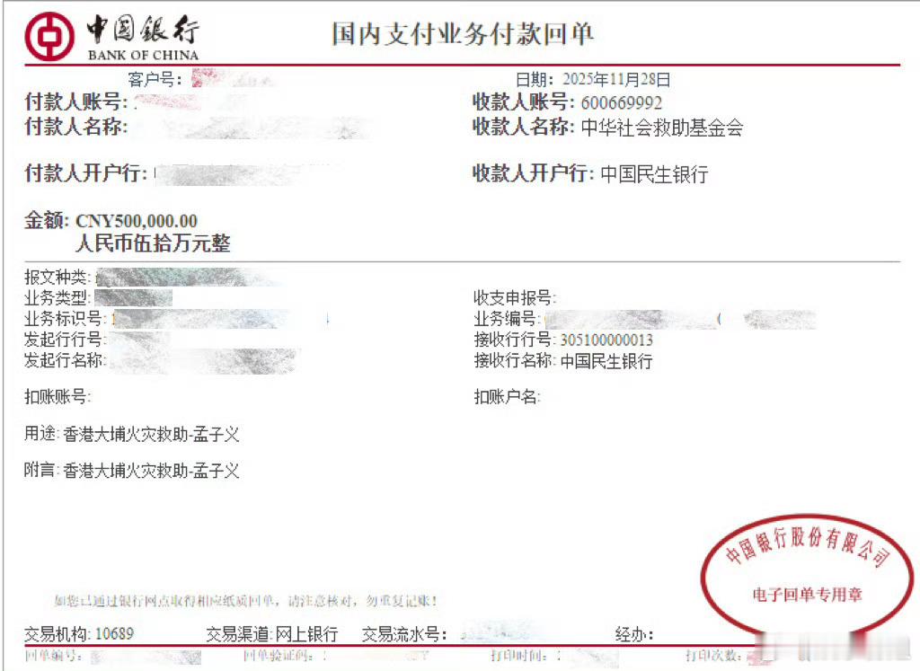 孟子义捐赠50万孟子义捐赠50万支援香港,祈愿平安