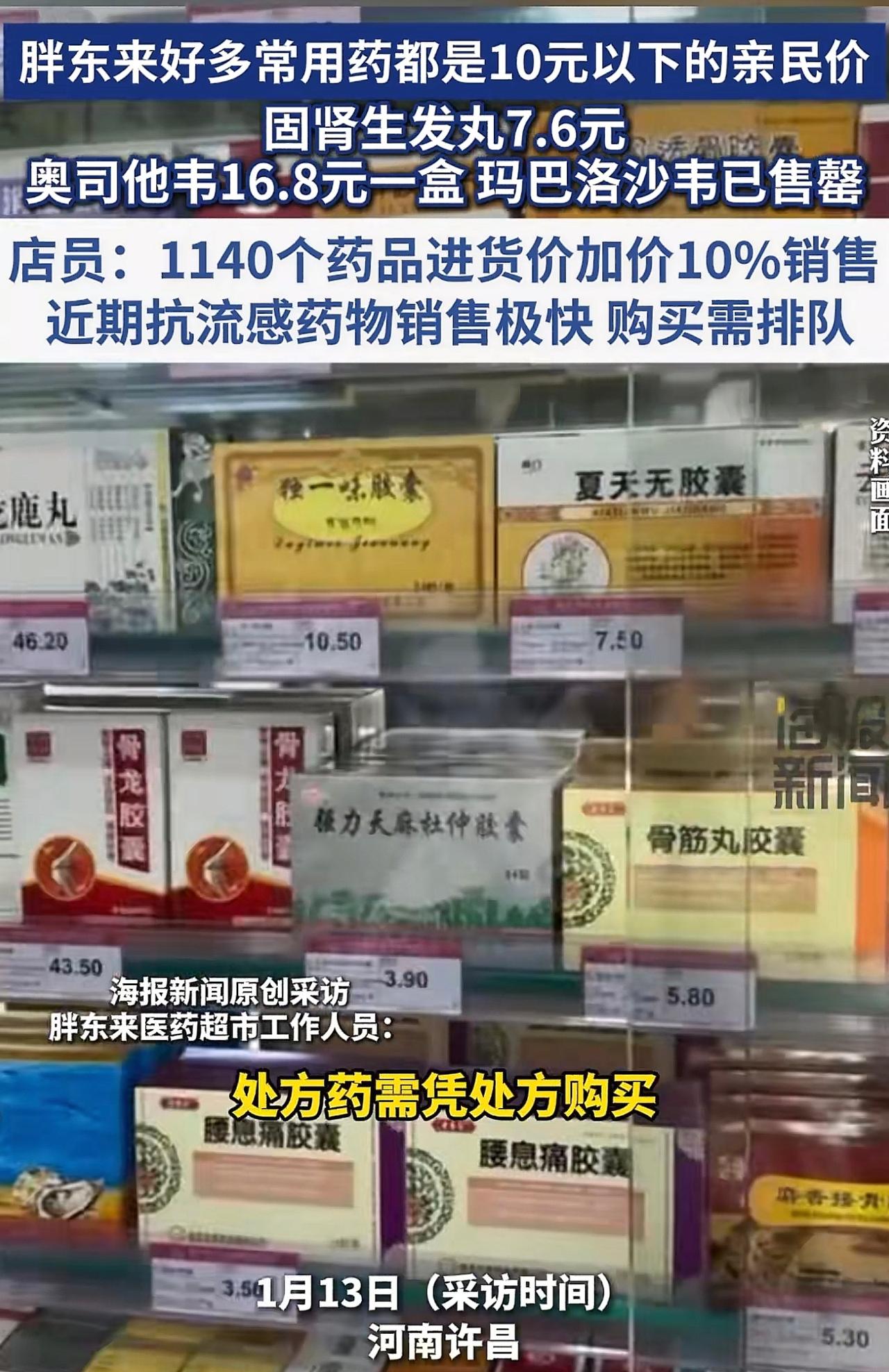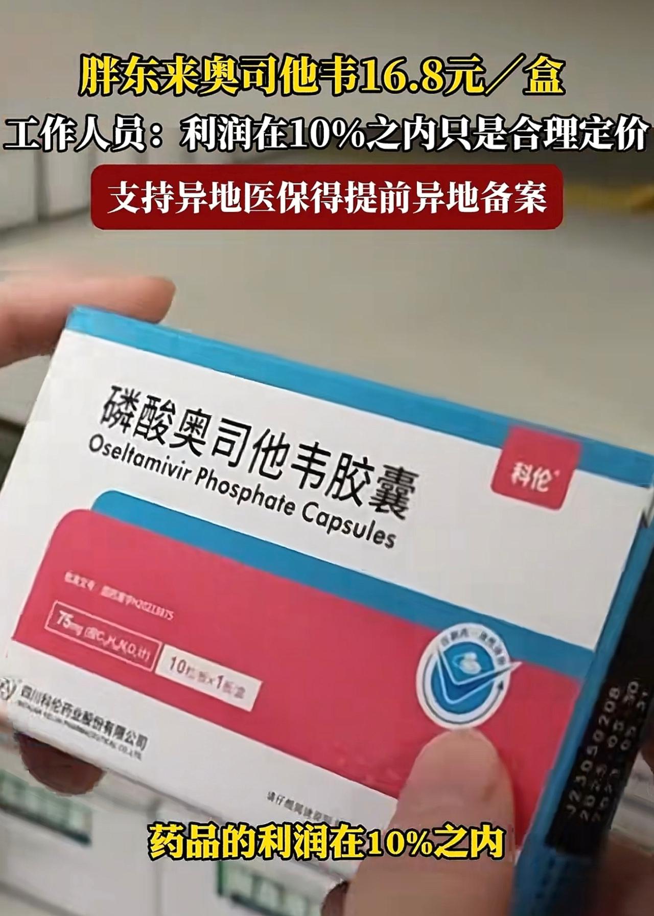 胖东来药店,“奥司他韦”仅卖16.8元每盒,按照进货价加价10%售卖。我们无论从网上、药房购买,或者去医院开药,都得在40-60之间的价位,那加价可就超过150%了,相当于胖东来加价不到2元,市场上就得加价30元以上。这就是无论我们医保有多少钱,都不够买药的原因,只是这种良心企业或许会触动某些人的大蛋糕,希望能够坚持下去。奥司他韦对比 玛巴洛沙韦价格