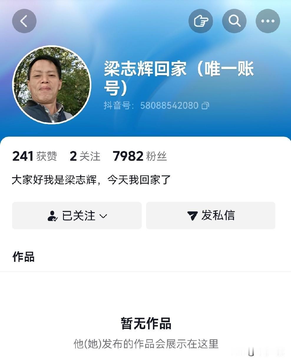 梁志辉竟在9月份就已经找到了,而且早已经跟父母见过面了。他已经开通了账号,目前账