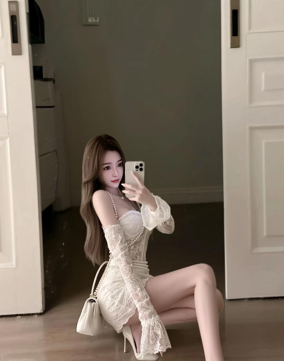优雅蕾丝裙,甜美自拍,时尚穿搭
