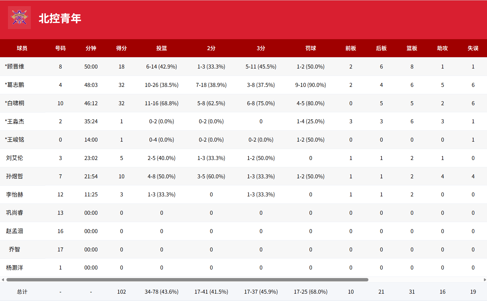 北控:葛志鹏32分、白啸桐32分、顾晋维18分