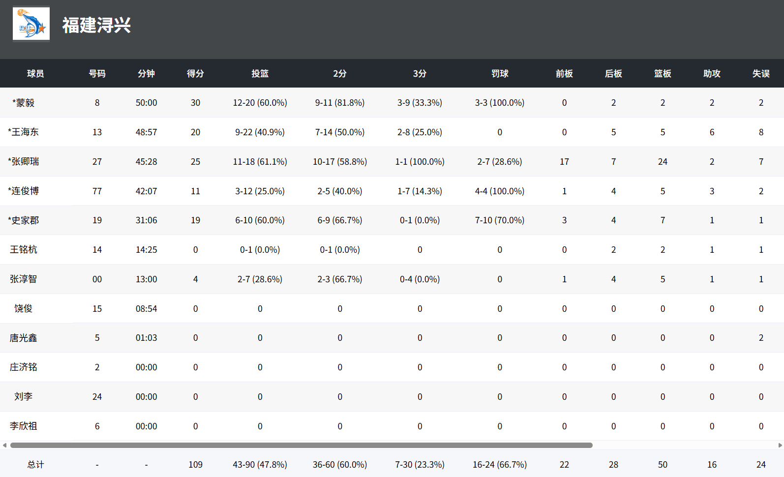 福建:蒙毅30分、张卿瑞25分、王海东20分