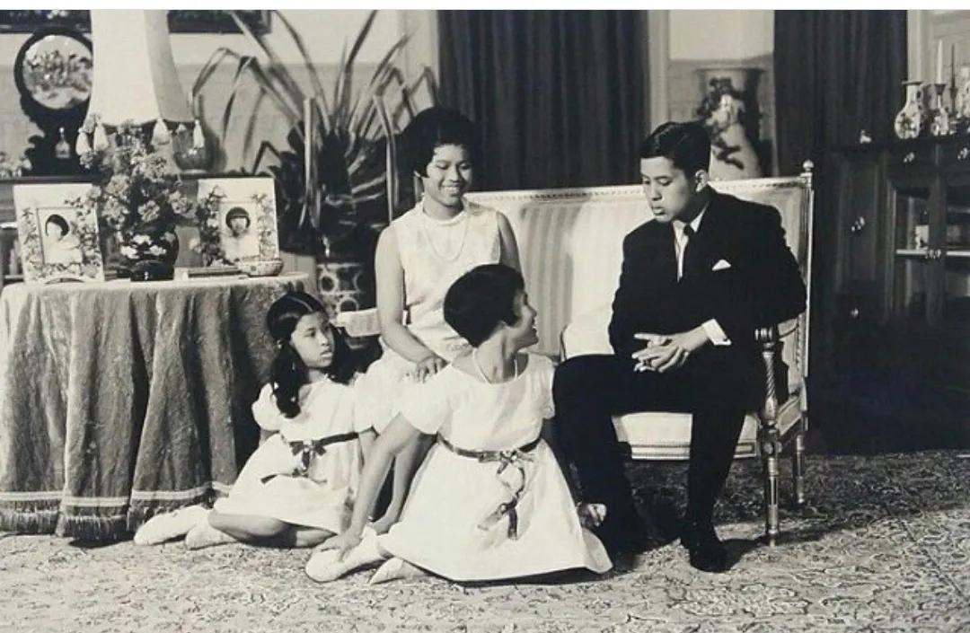 这张照片年轻的泰王有点憨憨的,他姐姐神情好似诗丽吉王后,兄弟姐妹四人亲情味十足。