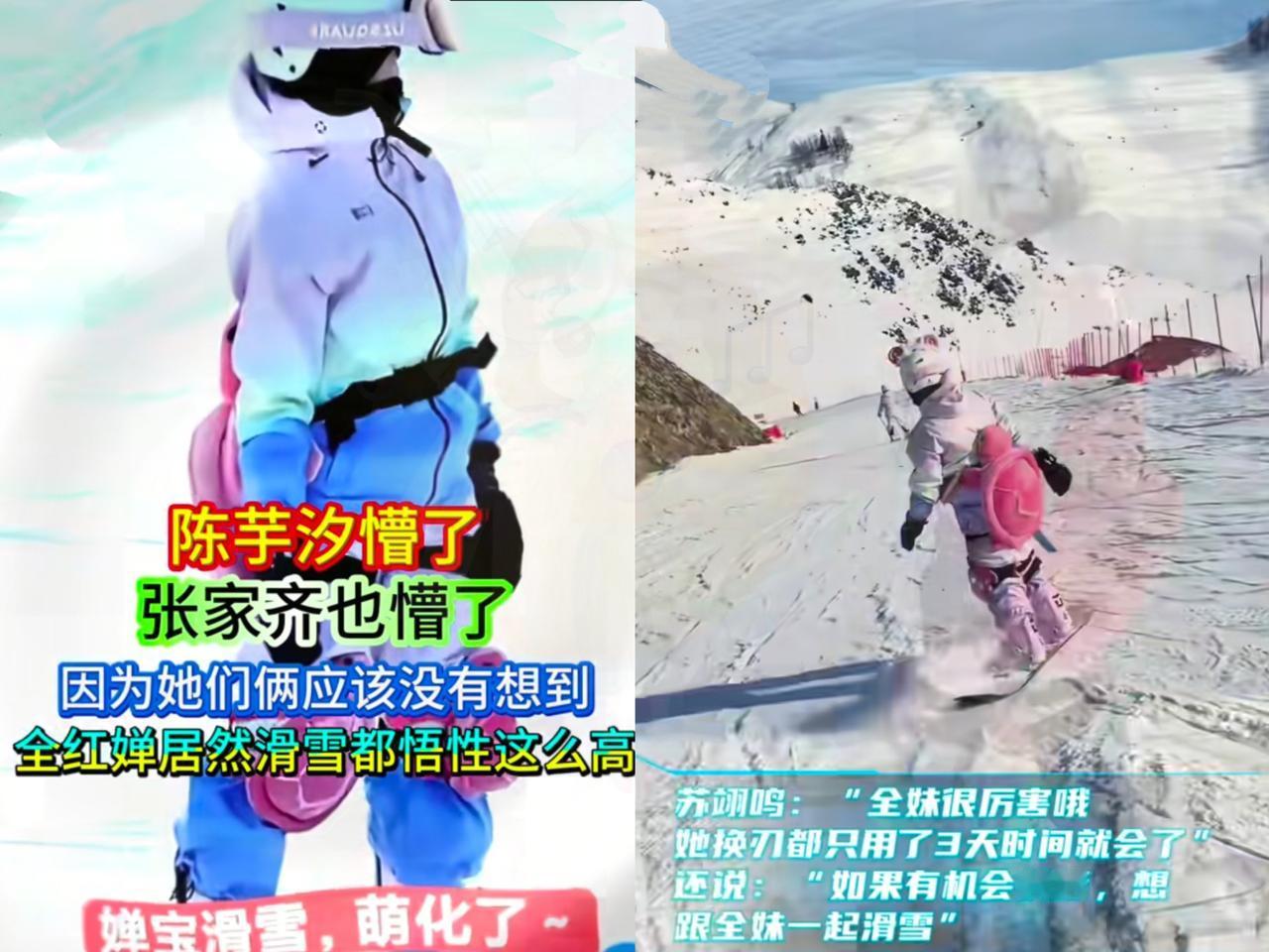陈芋汐懵了 张家齐也懵了 因为她们俩应该没有想到,全红婵滑起雪来悟性竟然这么高! 苏翊鸣看了全红婵滑雪视频,得知全妹学3天就学会换刃,都忍不住夸她天赋异禀,还盼着有机会约着一起滑。苏翊鸣这话,那可相当有分量! 换刃可不是滑雪的小儿科,普通雪场常客没摔个十天半月,都难掌握。全红婵一个跳水运动员,常年泡在泳池,跨界到雪场3天就get这项技能,“运动天才”实至名归! 苏翊鸣作为冬奥冠军,在滑雪界那是权威,主动想约全妹,肯定是真心认可她的天赋! 顶尖运动员之间的欣赏,那都是实打实看到对方的潜力! 想想看,要是这俩人真能同框滑雪,一边是雪上飞人,一边是水上精灵,说不定还能碰撞出不一样的运动火花呢! 大家觉得他俩同框会是啥样?快来说说。