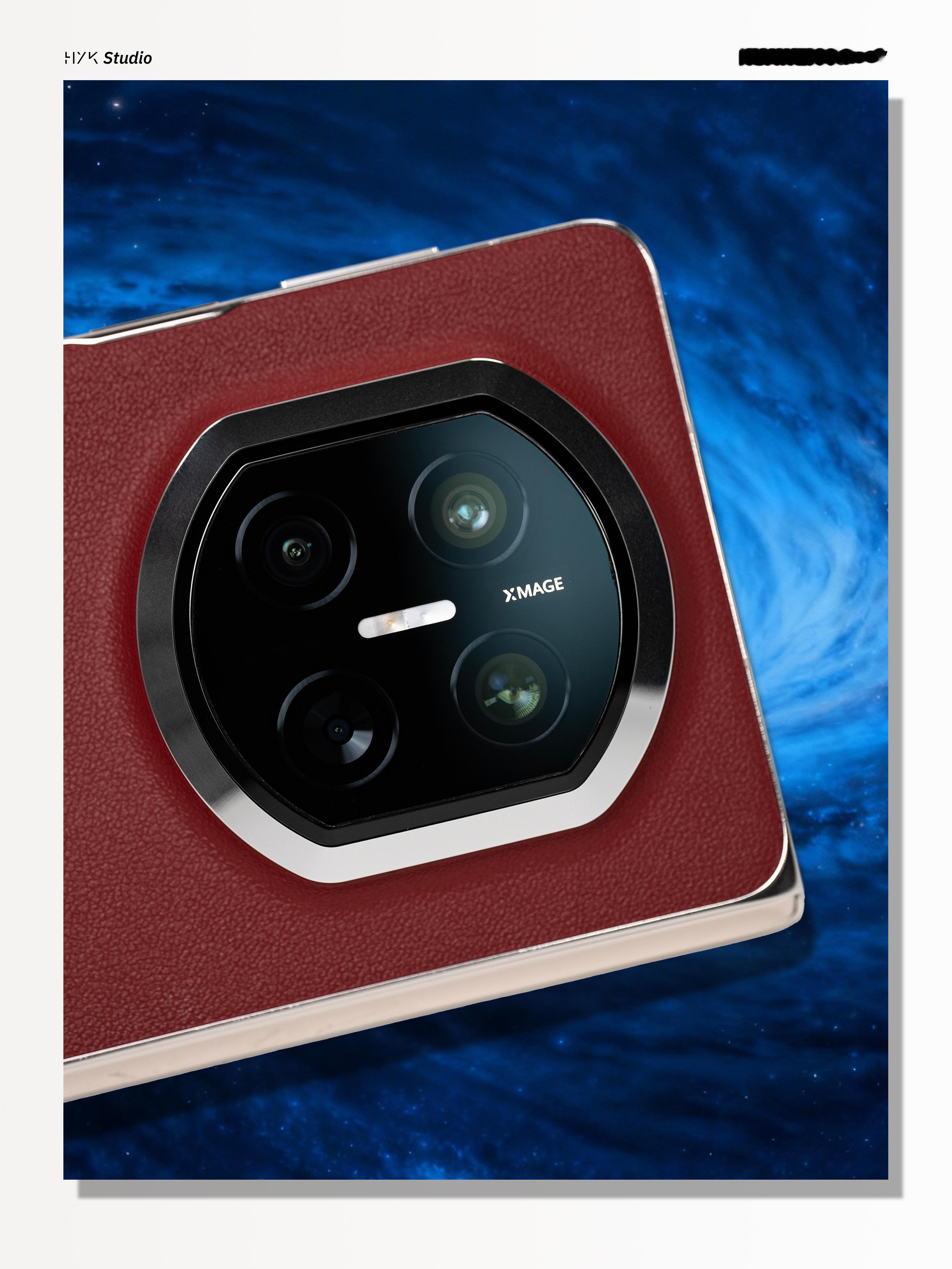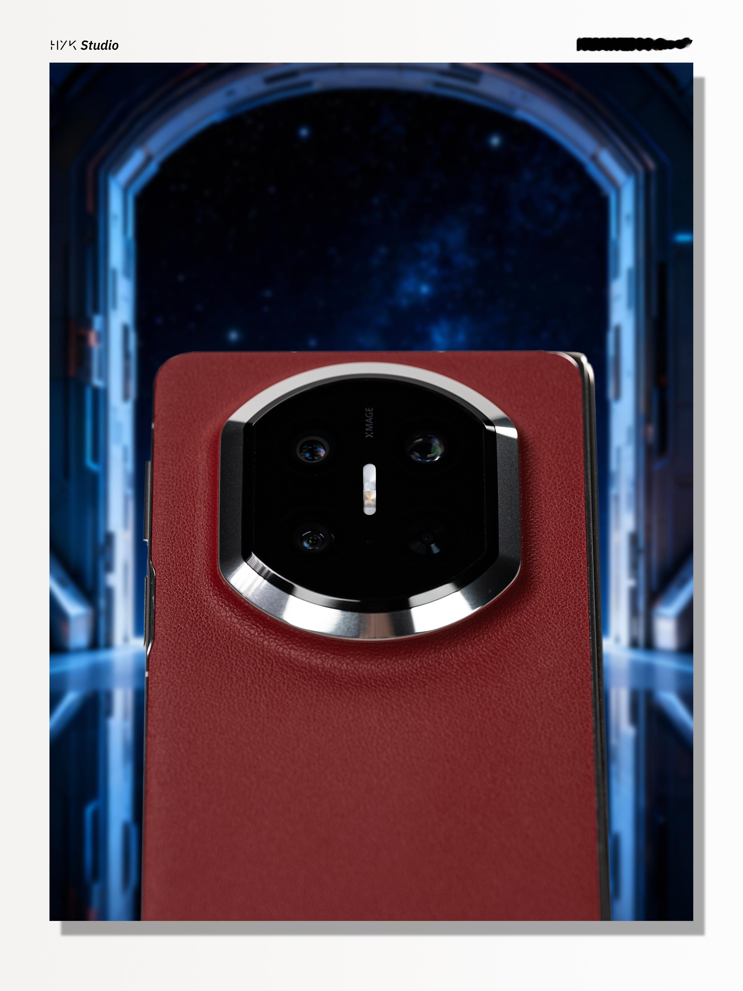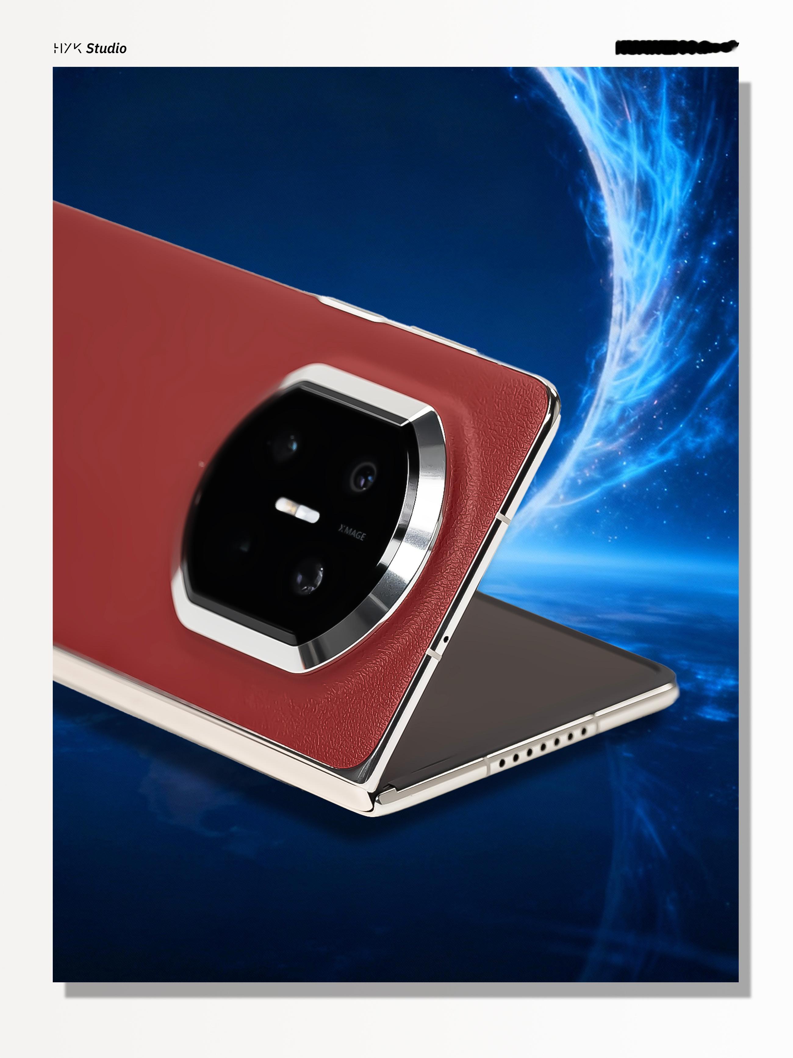 HYK图赏|华为Mate X7这款是寰宇红配色,后盖融入了非遗云锦工艺,摸起来是素皮的质感,观感很高级,镜头Deco采用多维曲面与立体晶切融合而成的全新“时空之门”设计,看起来会更有层次感。整机展开厚度4.5mm、折叠厚度9.5mm、重量235g左右,手感也很不错。售价12999元起。