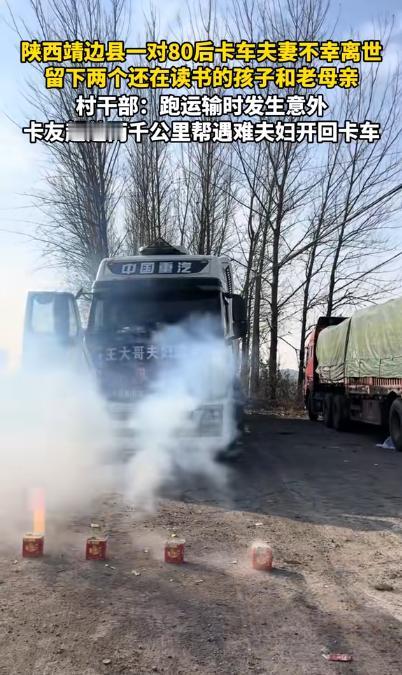 “泪目了!”陕西靖边县一对40岁左右的80后卡车夫妻在安徽完成卸货后的车辆检测环节突发意外,不幸双双离世。这场毫无预兆的悲剧,让一个原本完整的家庭瞬间崩塌,只留下两个孩子,以及年迈的老人!   近日一对 80 后卡车夫妻,怎么也想不到,一次再平常不过的货运会成永别,四十岁左右的年纪,本是家里的顶梁柱,事情的起因是两人到目的地搬完货之后,就等着车辆检测完回家,可意外偏偏在这时发生,两人直接就没了呼吸,连句叮嘱都没来得及留下。   消息传回家里面的时候,家里面的老人以及孩子十分的崩溃,后来这件事很快就在货车群里面传开了,榆林的卡友们刷到消息都愣了,震惊过后只剩无奈,跑运输的,谁不是把脑袋别在腰上讨生活,可这么突然的悲剧,实在让人受不了。   在榆林卡友圈小有名气的 “卡车豆哥”,第一时间就听说了这事,他和遇难的夫妻俩不算至交,但都是跑卡车的,太懂一辆卡车对一个家庭意味着啥。   那可不是简单的谋生工具,车斗里装的是夫妻俩的心血,方向盘后托着的是一家老小的希望,一想到这家人没了支柱,豆哥心里那股子责任感就上来了,得把他们的车开回去,不能让车留在外地,更不能让家里人再添堵。 随后逗哥没有意思犹豫,立马就打电话叫上了哥几个一起去把他们的车开回来。   他们都清楚,这趟路不是普通的赶路,是给已经去世夫妻俩人的一个交代,给活着的人一份安慰。   出发前,四个人围着自己的车检查了好几遍,又备了些面包、矿泉水,还有提神的咖啡,从榆林到安徽,一千多公里的路,得抓紧时间,还得保证安全。   路上开车的时候,没人提自己累不累,聊的全是 “到了安徽先找谁对接”“怎么跟家属说能让他们少点伤心”,满脑子都是早点把车开回去。   到了安徽的货运站,他们跟工作人员说明情况,对方也挺体谅,很快就办好了车辆交接手续,全程没人提钱,也没搞任何排场,就安安静静地验车、填表,生怕动静大了,反倒让远在靖边的家属更难受。   卡友老周后来跟人说,那车跟咱们的车一样,都是跑过千把公里的老伙计,开回去,就像把夫妻俩的念想捎回去了。   返程的路更长,四个人轮流开车,夜里换班的时候,谁也没多说话,,说不定他们以前跑这条线的时候,也在同一个服务区歇过脚,豆哥握着方向盘,心里总想着,快点,再快点,孩子们还等着见爸妈的车呢。   终于到了靖边,车刚驶入小区门口,两个孩子就扑了过来,小手扒着车门,眼泪哗哗地掉,那是爸妈每天开的车,连车身上的划痕都熟悉。   四位卡友站在旁边,没上前打扰,就这么静静地看着,心里的石头总算落了地:这一路没白跑,值了。   后来这事又在卡友圈里火了,网友们都夸他们,这才是真正的卡车精神,不是亲兄弟,胜似亲兄弟,货运路上不只有苦,还有这么暖的人情。   那对夫妻虽然走了,但他们的车回了家,带着四位卡友的心意,也带着同行间的守望,孩子们和老人往后的日子还得继续,但每当看到那辆停在楼下的卡车,就知道,在最难的时候,有人帮过他们,人间还有光。 (信息来源 :大象新闻 )