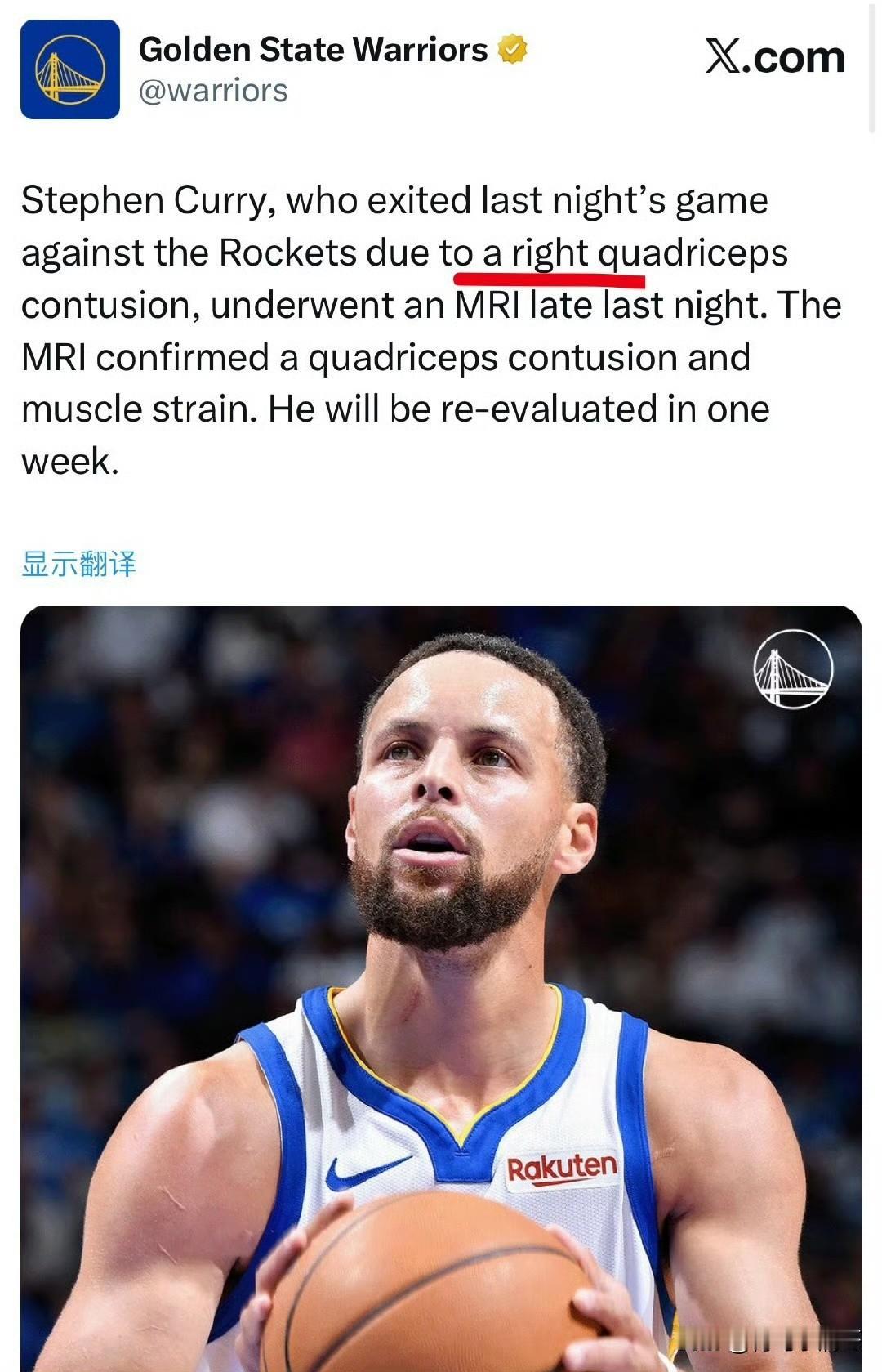 左腿和右腿分不清吗!!!库里伤病报告出错,官方更正是左腿! 根据记者Dalton Johnson最新消息透露,库里的伤病情况报道出错,勇士队医Rick Celebrini对球队官方库里的伤病报告进行更正,是左腿受伤而不是右腿。 前两天和火箭的比赛中库里在防守一个回合,遇到申京挡拆碰到了左腿,当时库里就有点不舒服,走路有点踉跄,但是他还是积极的去参与到防守了,赛后官方经过检查后公布库里是遭遇了右腿股四头肌挫伤,但是今天队医才更正其实是左腿受伤了。 这是左右腿不分吗,这种错误也能发生,是不是治疗的时候就当右腿去治了……那可就尴尬了,当然也可能是发布消息的人员搞错了。 库里将缺席最近的一个周比赛,如果恢复的好下周也就回来了,如果恢复慢,那么他可能需要继续休息治疗,祝库里早日康复! 库里 库里的身体状况 勇士队