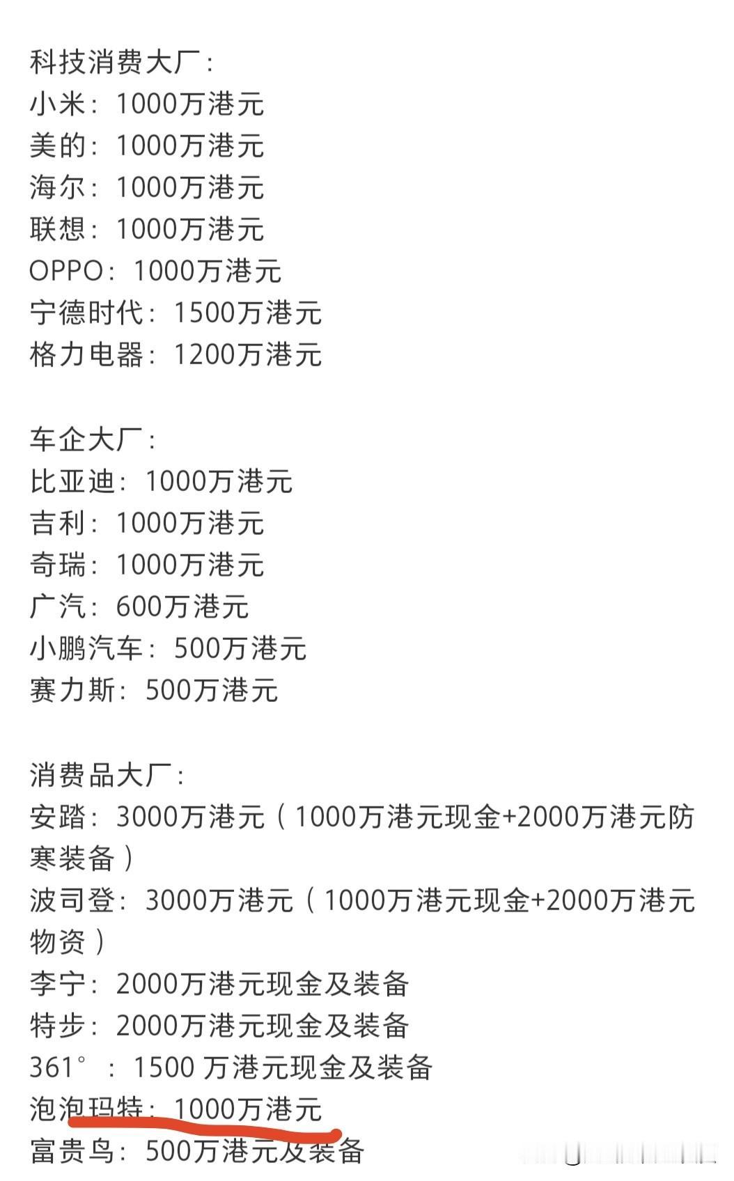 网友整理的企业捐款名单,我们平常所熟悉的企业几乎都上榜了。 关键时刻还是得这些企业家啊,虽然很多平时都有被骂,但是关键时刻永远走在最前面。 尤其是河南这几家大企业,都很给力,不仅积极,而且大方。最主要的,它们都是以性价比在市场站稳的脚跟, 「泡泡玛特除外[捂脸]」 话说这次社会捐款,大网红们好像都蛮低调的哎。🎶一哥,🍑一哥都没看到捐款的新闻。 尤其🎶一哥,平常口号喊那么响,怎么社会需要帮助时,却低调了? 冬日生活打卡季