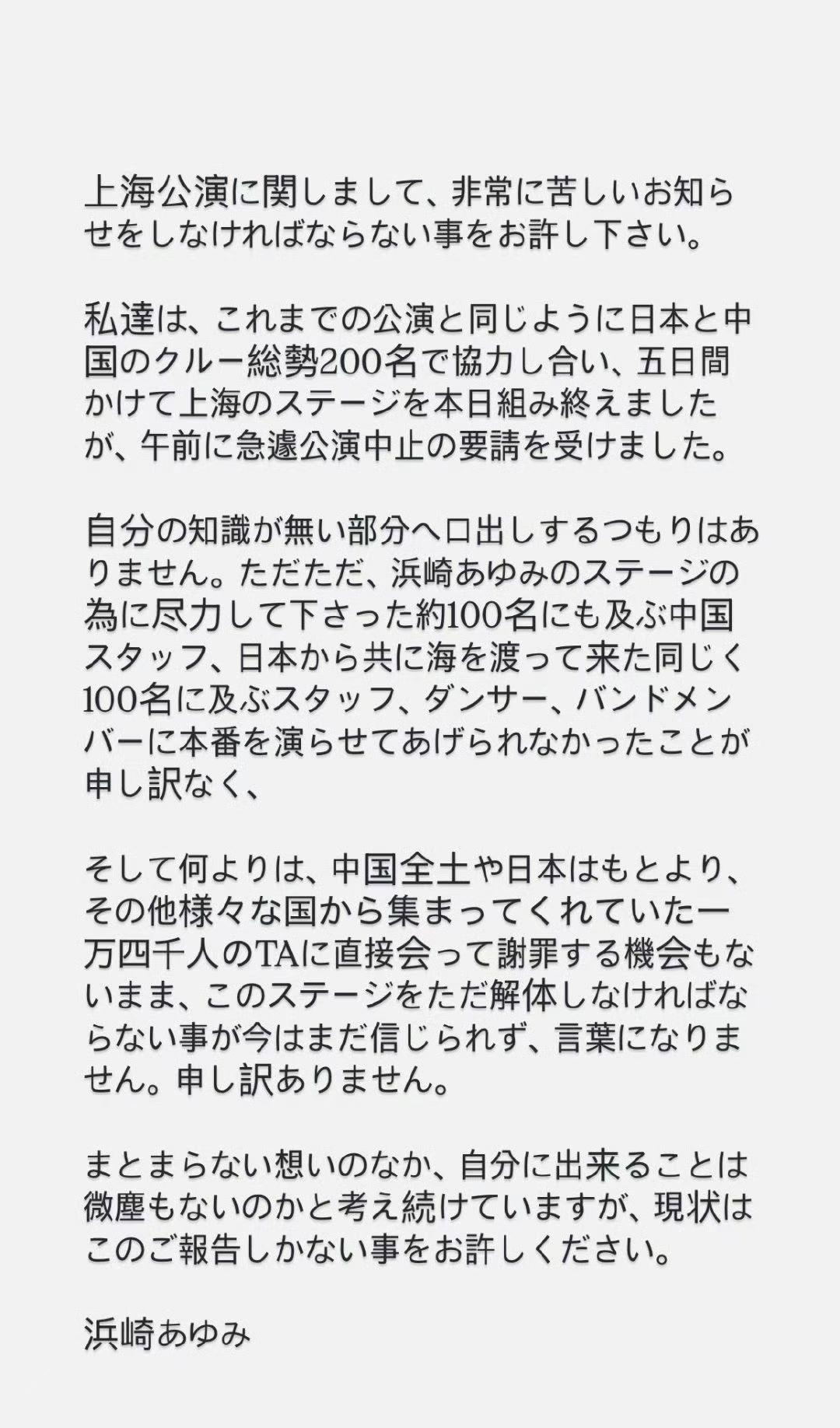 官方掐麦背后的民间未抵制 日本艺人大槻真希昨晚上海演唱会中途被强行掐麦,干脆说拉闸更确切些,成为今日最令人震惊的新闻。 另一位日本艺人滨崎步原定今日的上海演唱会则因不可抗力取消。滨崎步对着有100名中国工人与100名日本工人耗时五天共同搭建的豪华四面台心翻巨浪,听说昨晚她对着上万个空座独自唱完了全场,而这一切,本该留待24小时后的今晚的满坑满谷的观众。这条新闻也让人震惊。 根据滨崎步在社交平台发布的消息,她的上海演唱会售出了1万4000张票;而从大槻真希演唱会的现场视频来推测,她的观众也可以用满坑满谷来形容。也就是虽然近日中日关系紧张,但民间没有对日本艺人演唱会进行自发的抵制。 噫,民间跟官家,没有对表。