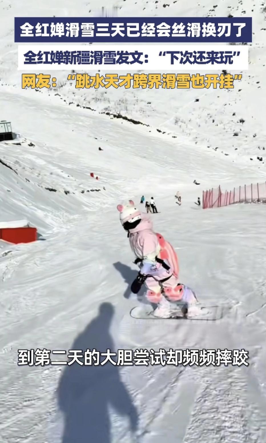 全运会结束后,全红婵去阿勒泰滑雪了,并分享滑雪心得:勇敢面对挑战,享受运动带来的快乐。 网友直呼,厉害,运动天才的又一次突破,太燃了! 第一天,唯唯诺诺的小心试探 第二天,大胆尝试却摔得七荤八素 第三天,已经完全掌握要领,丝滑驰骋,游刃有余。 真是跳水天才跨界滑雪也开挂,期待妹妹解锁更多滑雪名场面!(图片来源于网络侵删)