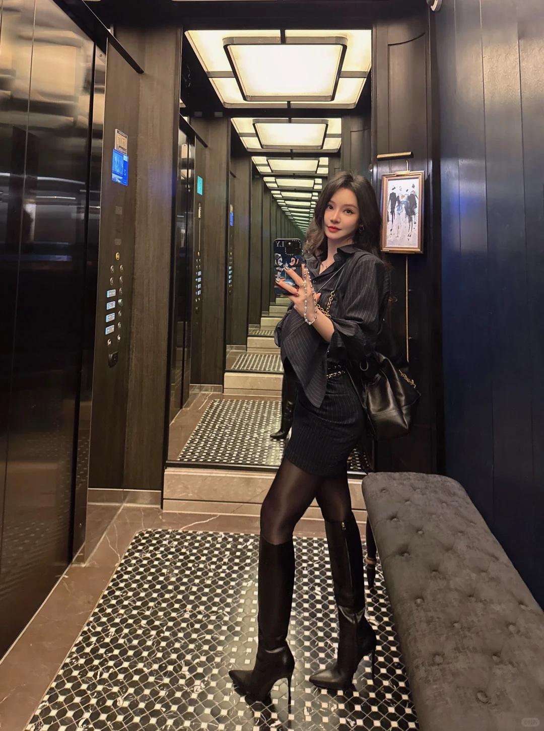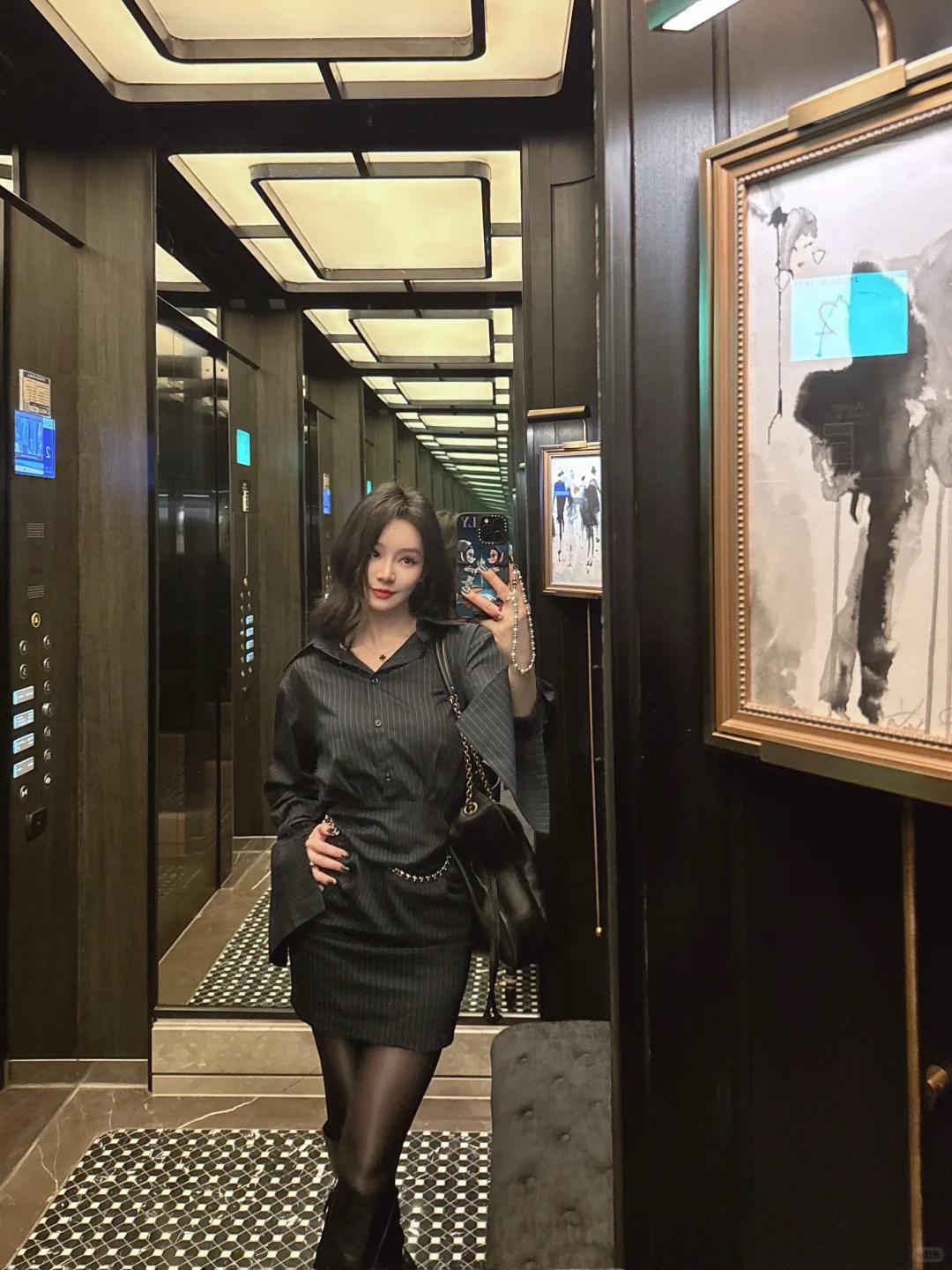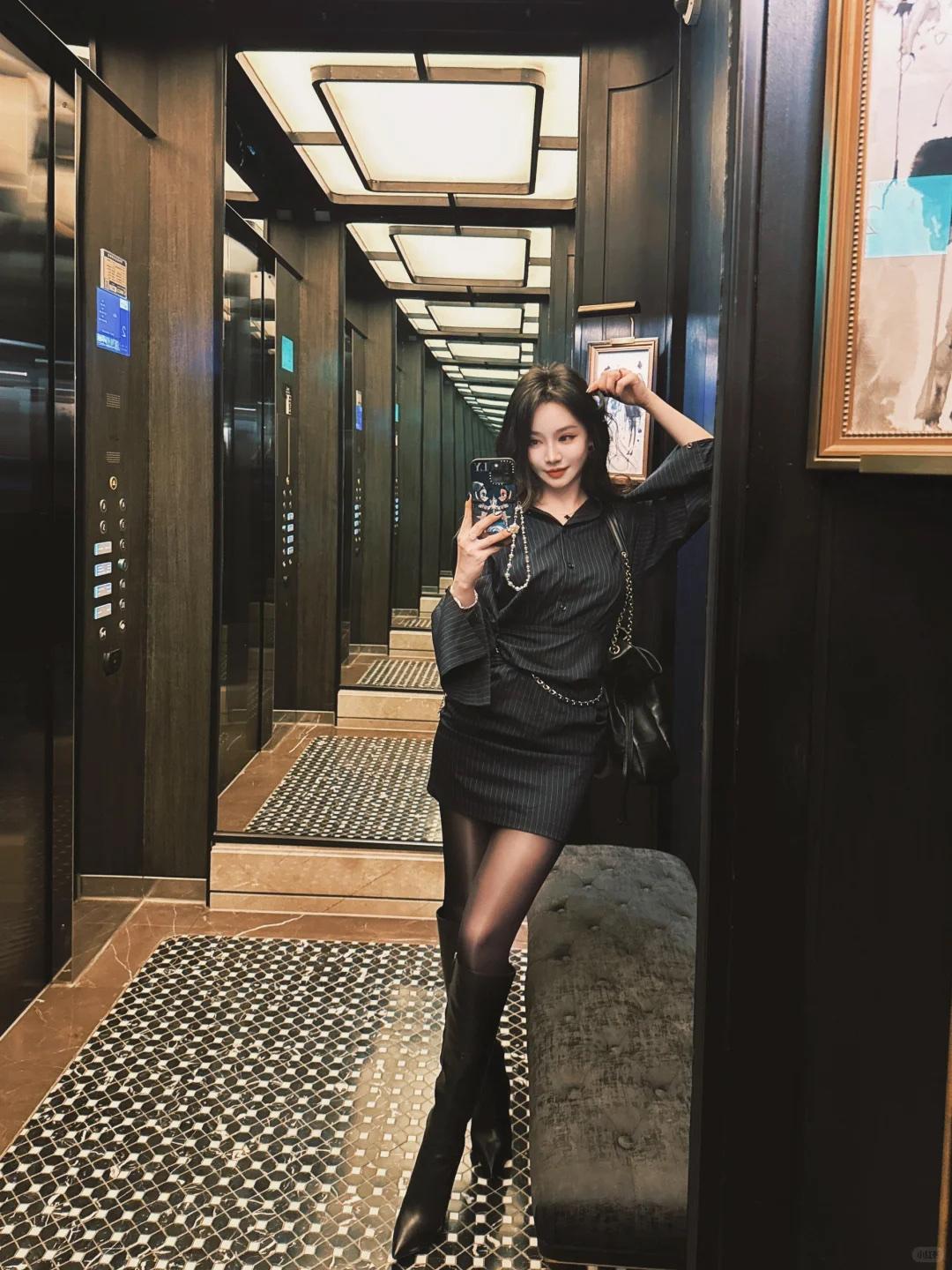 美图欣赏,看图写诗《都市倩影》一身墨色衬红妆,腕底香风曳锦江。笑看街