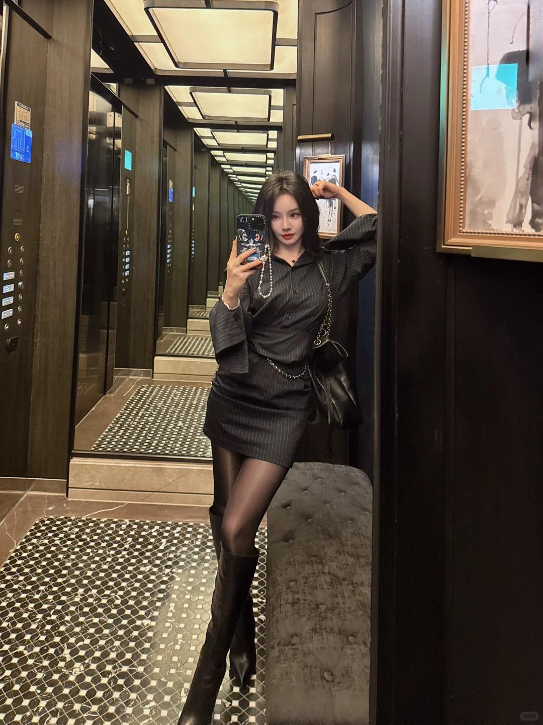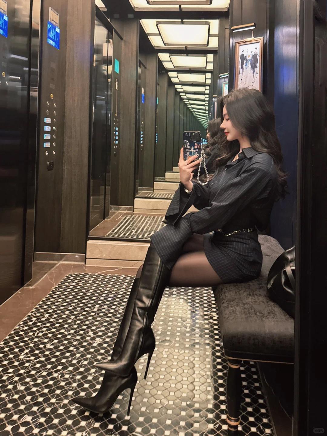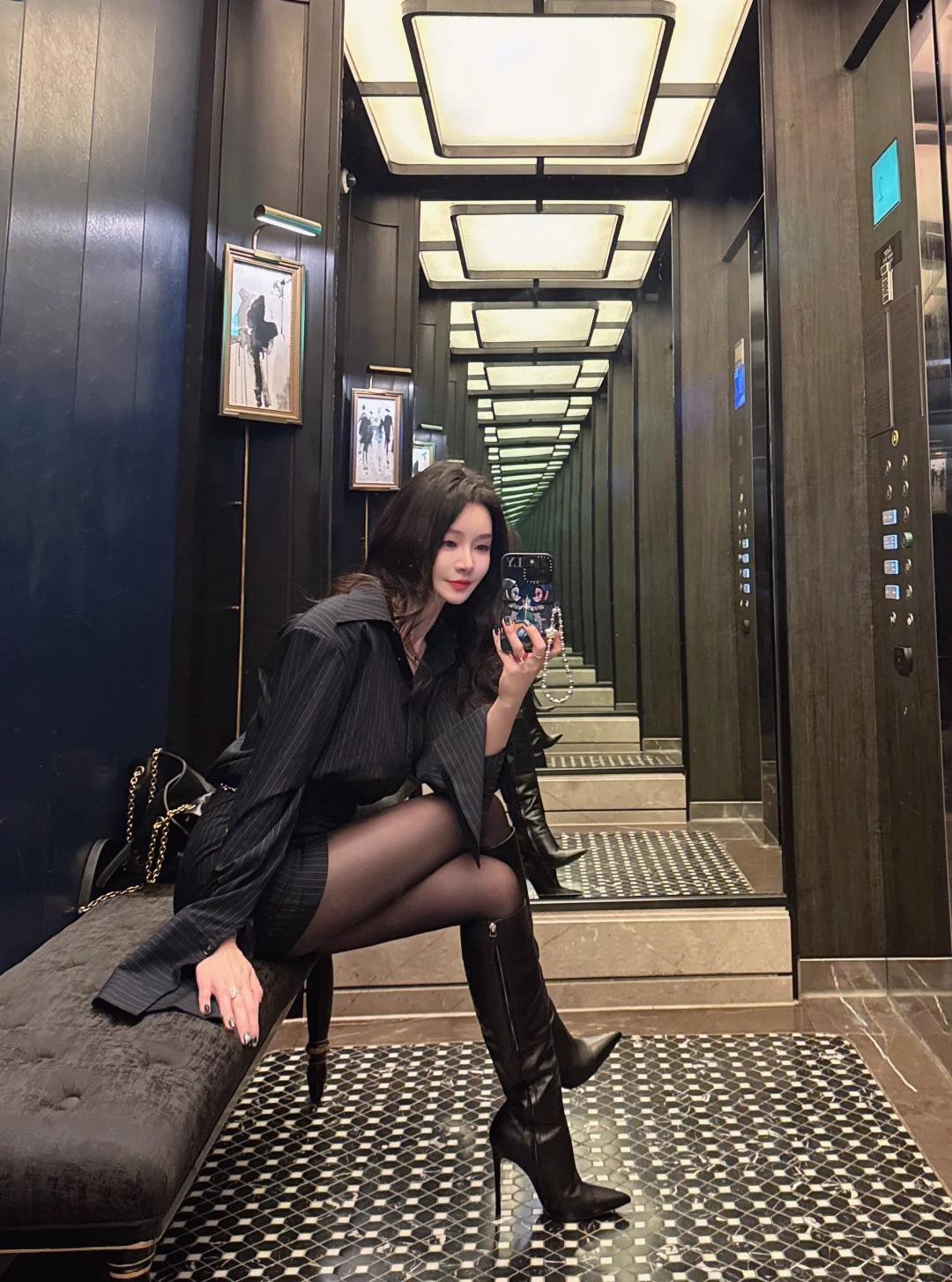 美图欣赏,看图写诗《都市倩影》一身墨色衬红妆,腕底香风曳锦江。笑看街