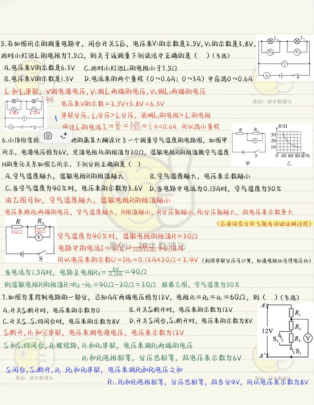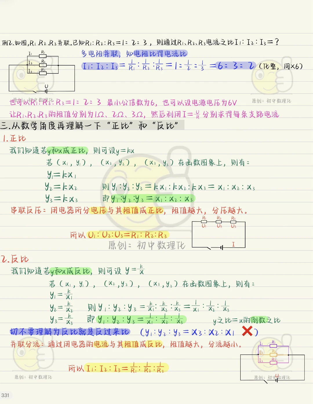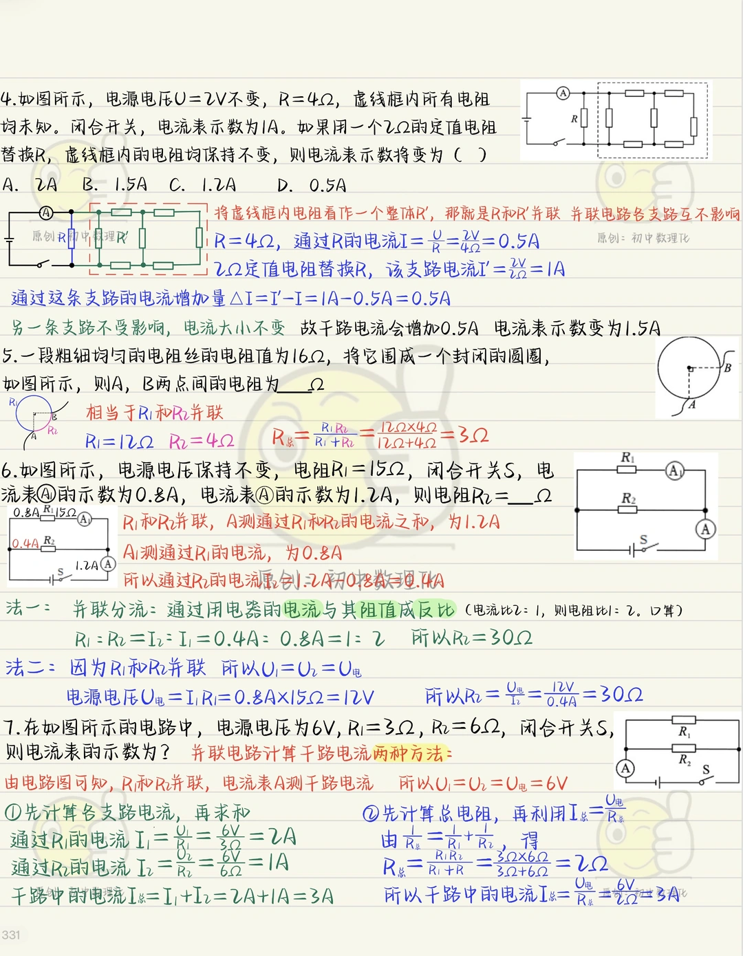 串联分压:在串联电路中,总电压等于各电阻电压之和。电阻越大,其分得的电压也越大。电压按电阻值正比分配。 并联分流:在并联电路中,干路电流等于各支路电流之和。电阻越大,其分得的电流反而越小。电流按电阻值反比分配。 核心是欧姆定律:I = U/R,它是分析电路的基础。