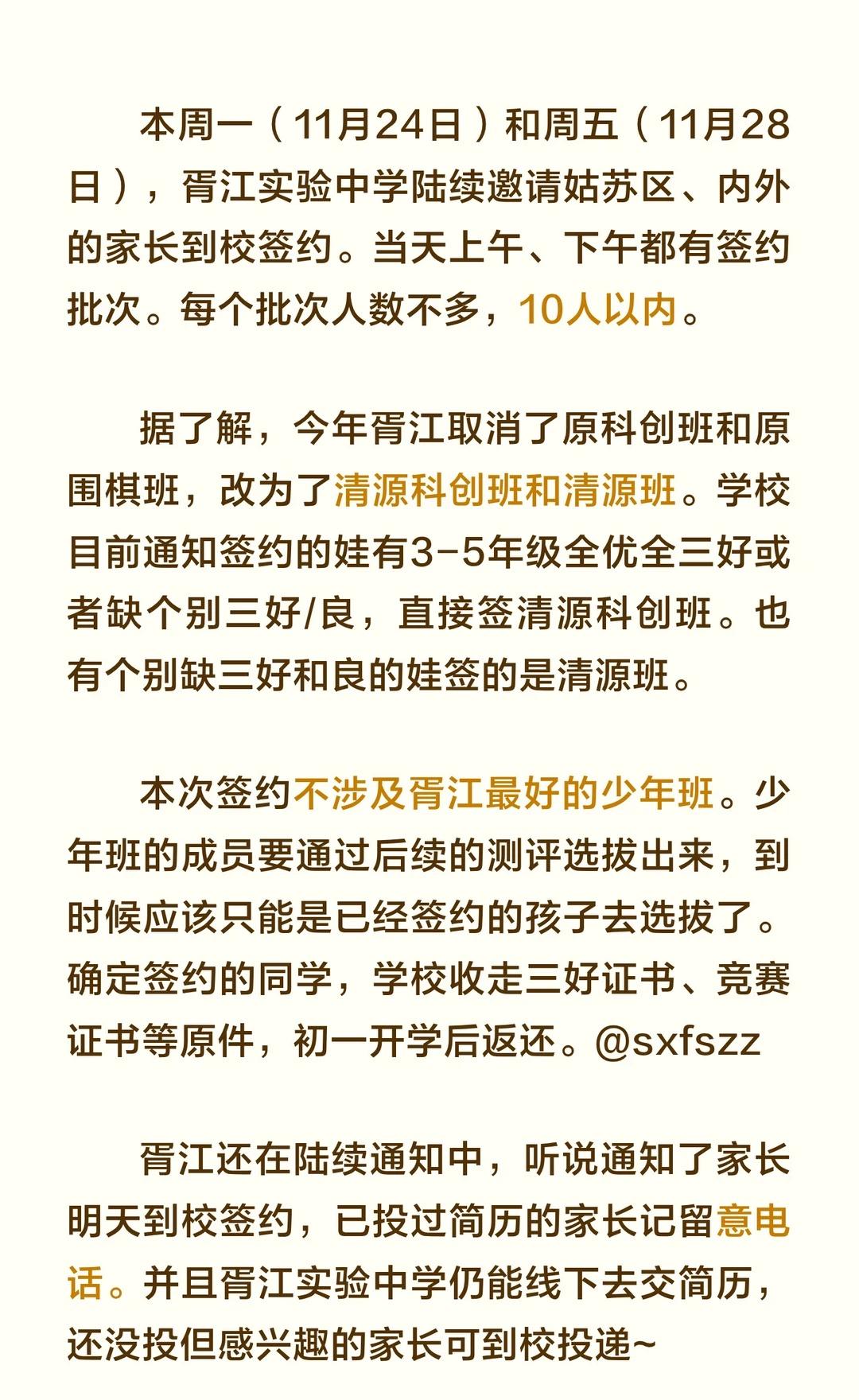 本周,胥江通知签约! 姑苏区学校陆续开始签约了哦,大家随时留意电话通知~苏州家长