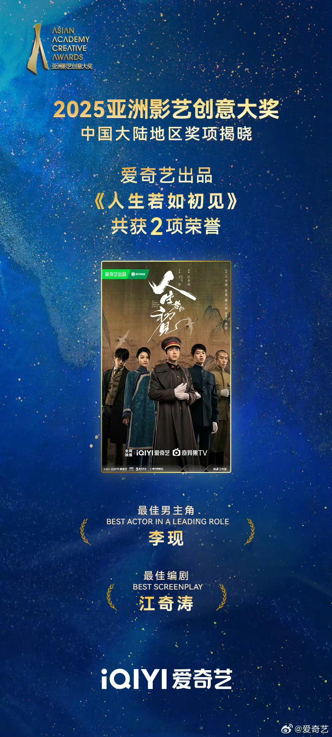 李现人生若如初见精品好剧江奇涛老师又拿下一个编剧奖了李现之前也凭人生拿下亚洲影艺