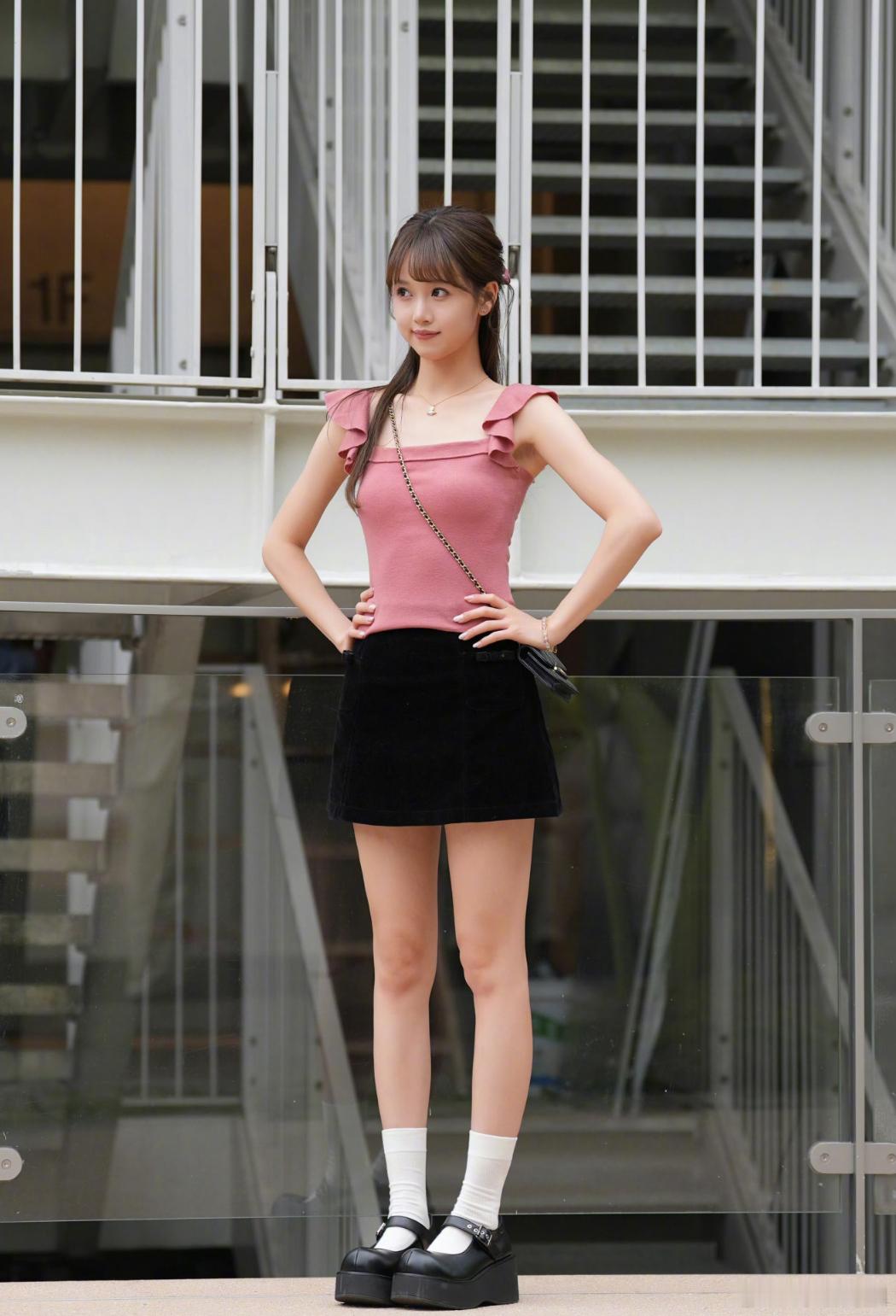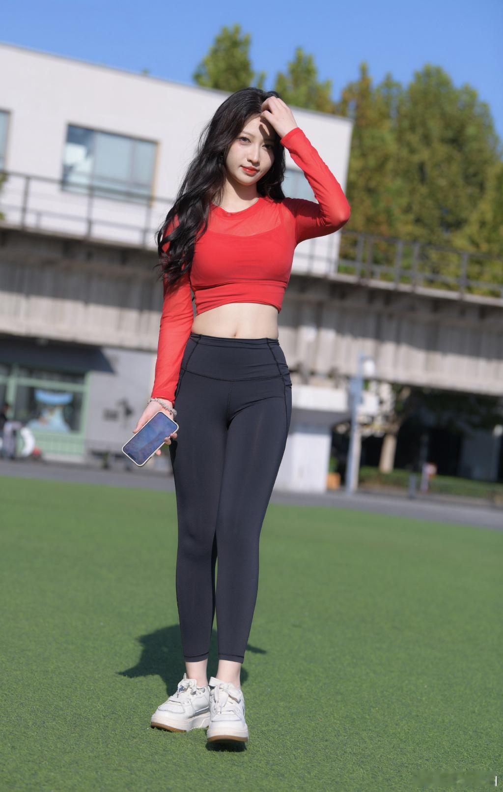 粉色紧身裤穿搭街拍。粉色紧身裤穿搭街拍