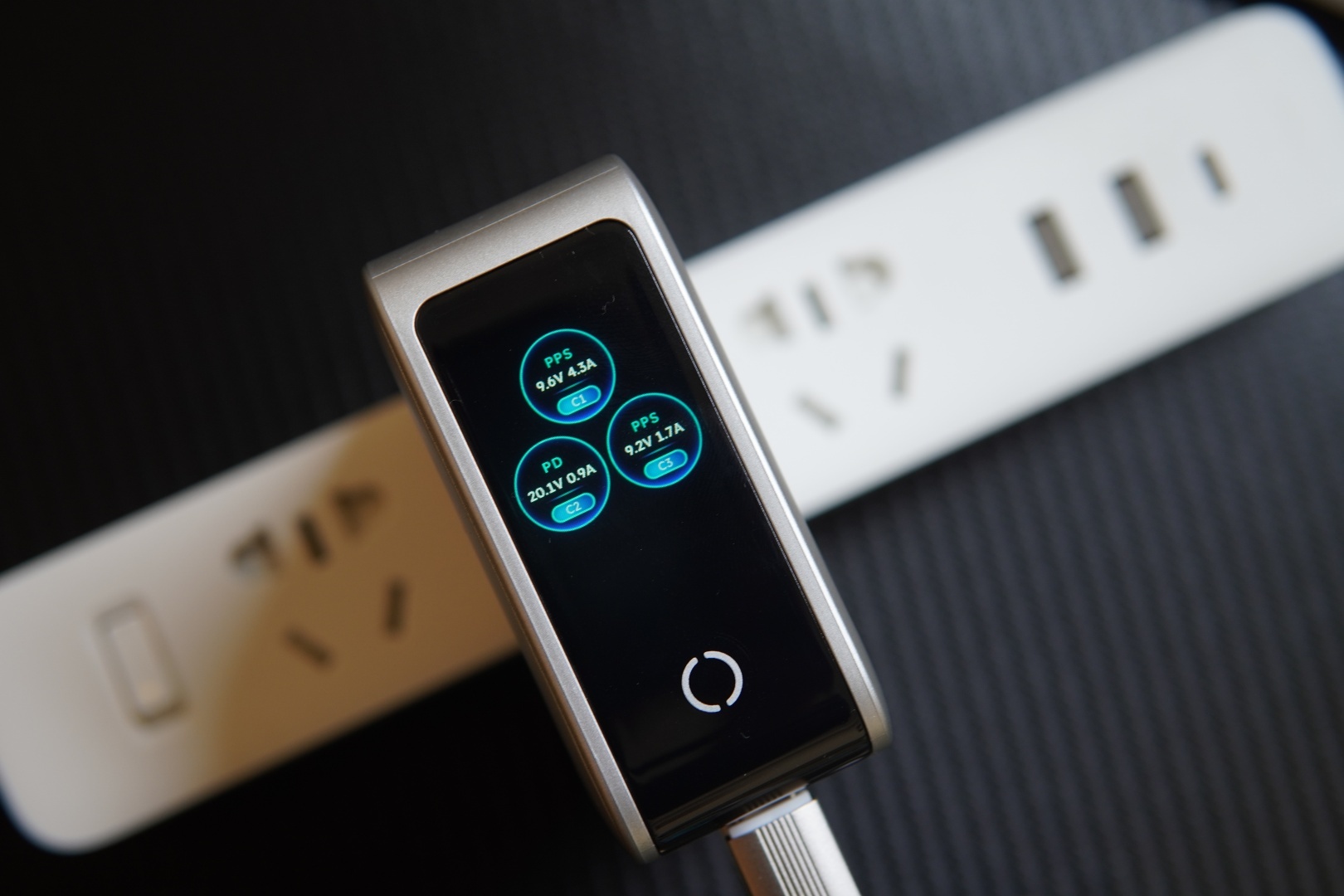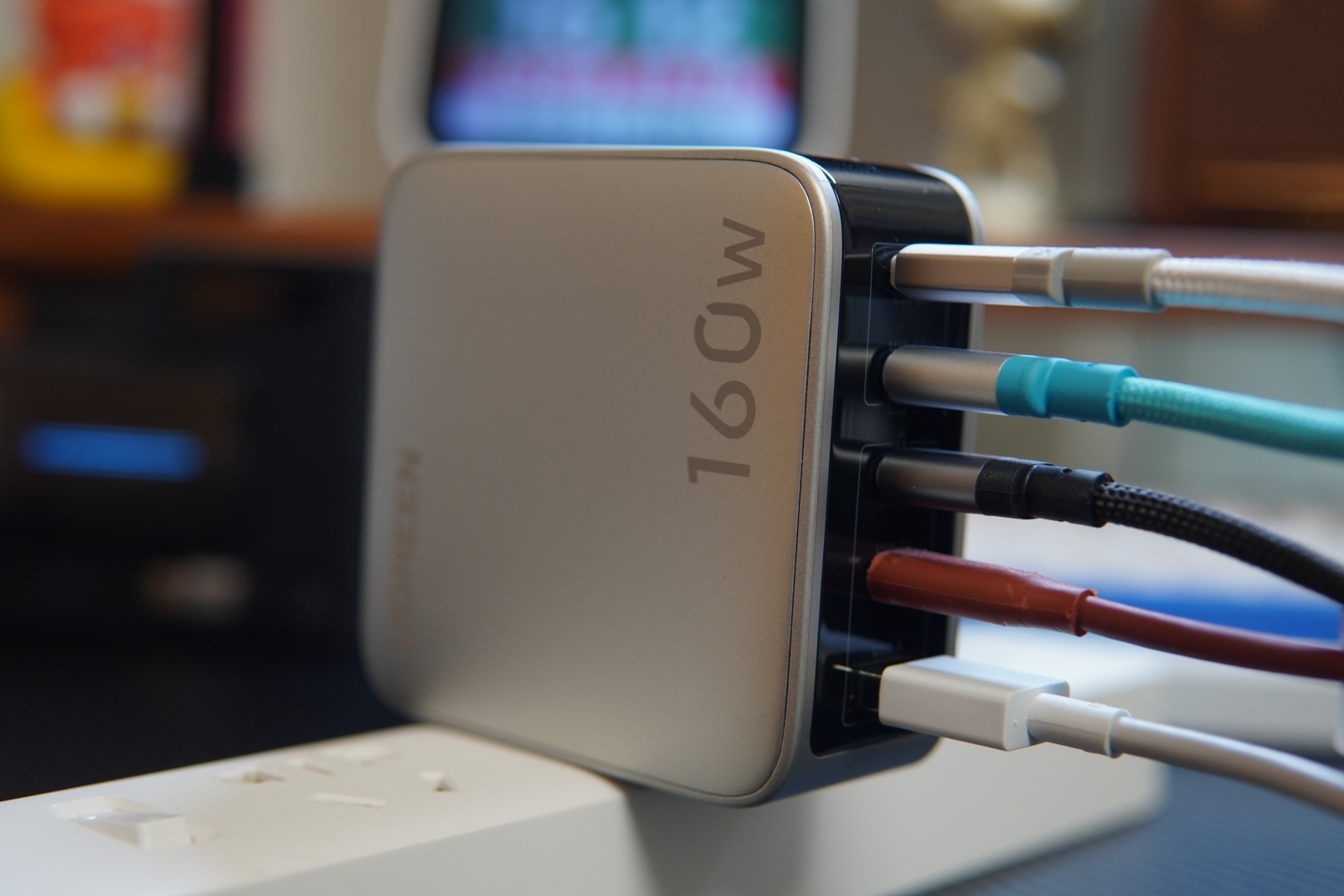 收到了绿联160W速显充,这是一个可以即时显示充电状态的五口充电器。自带的智能数显屏,可以实时显示每一个接口的充电协议,输出功率, 一眼就可以看清所有接口的充电状态。充电时的电流电压,显示的明明白白,充得快还是充得慢,一目了然。长按超过3秒,还能连续自由切换横屏和竖屏,看起来更方便。4个C口1个A口,总共五个充电口,一个充电头搞定五个设备,不管是在家用还是出门用,全都搞得定。C1口、C2口单口盲插可以跑到140W,兼容PD、PPS多种主流快充协议,手机、耳机、笔记本,接入设备后就自动匹配,快速回血。内置了NTC温度检测芯片,充电过热时会智能调整充电功率,安全性也不用担心。至于3C认证,当然也是有的。连续点击多次,还有显示充电状态的情绪表情,算是一个小彩蛋。重量355g,作为一个160W大功率五口充电器,也算合理。可折叠插头,携带方便,插入也足够稳当。如果你有多个设备充电的需求,一个绿联速显充就够了。