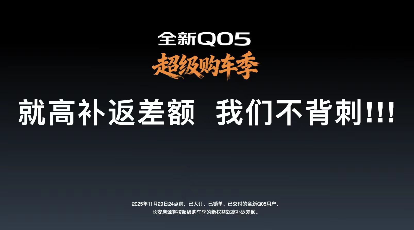 针对前几天上市的全新启源Q05,长安启源又推出了「超级购车季」活动,全系无门槛超级置换价格7.49-10.49万而且还有一些新权益,比如三电终身质保、整车 6 年或15 万公里质保、电池衰减只换不修、电池自燃 1:1 赔付、购置税补贴兜底。相当于相比此前的价格又降了5000,而且锁单、交付的用户全部按照新权益补返差价。全新Q05我开过了,整体质感不错,没有短板、很全能,主要是配置极高,前排座椅加热通风按摩都有,顶配10万出头,真的爆杀很多竞品
