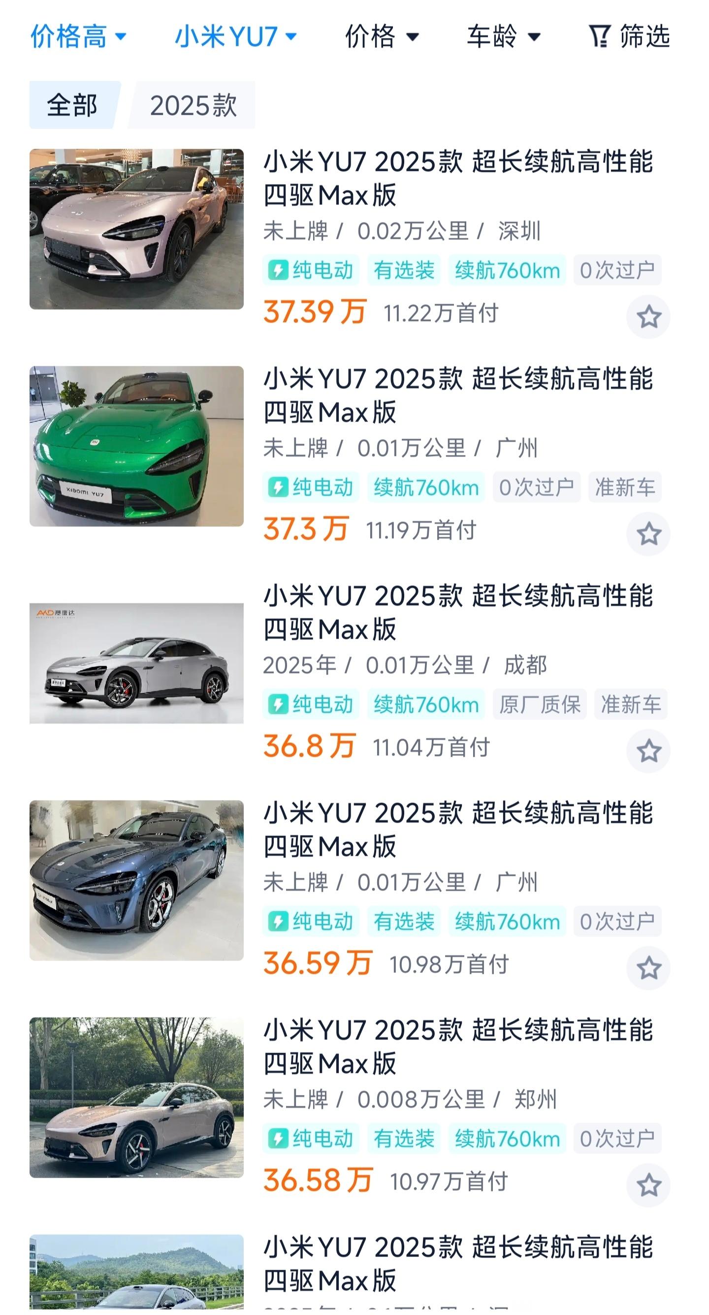 顶配售价37.98万的问界M7,二手车平台最贵的一台是33.35万顶配售价32.99万的小米YU7,二手车平台大量都在36万以上销量比不过,价格也够不到,然后自封「35万级中大型SUV」销冠太自信了