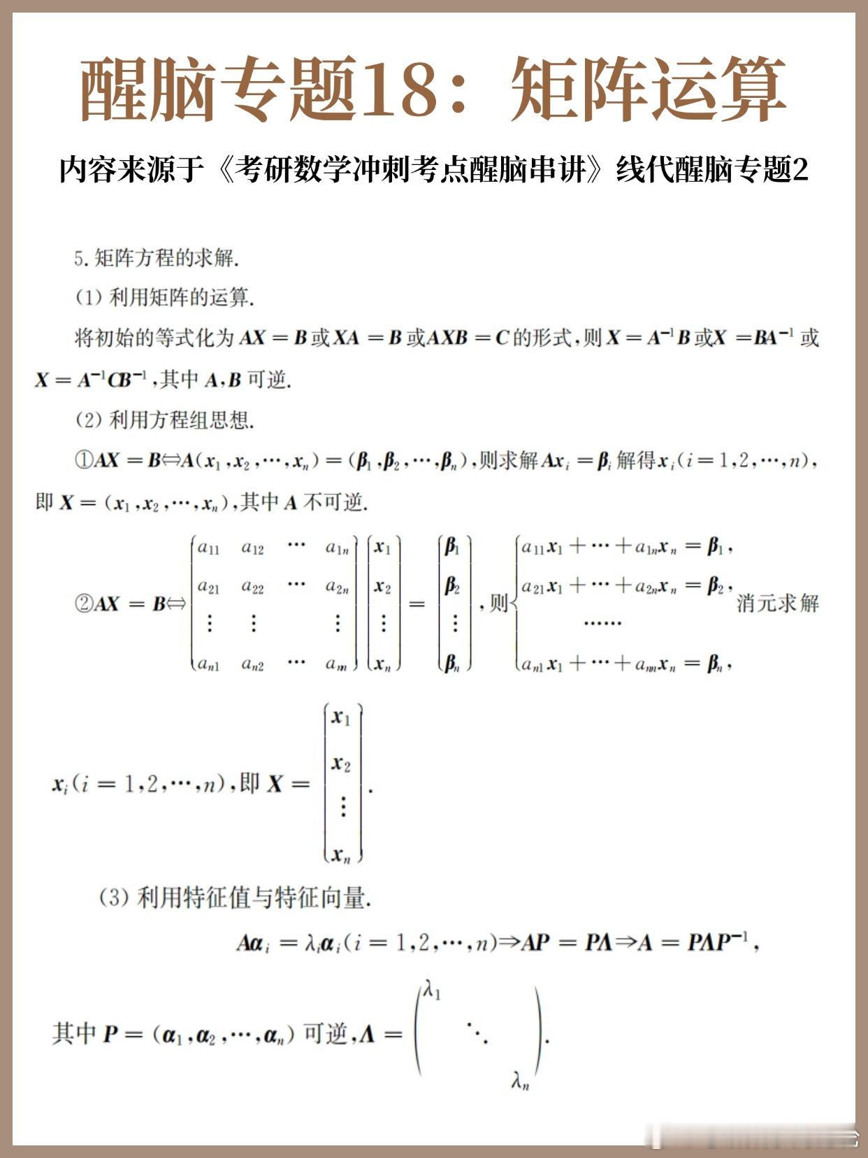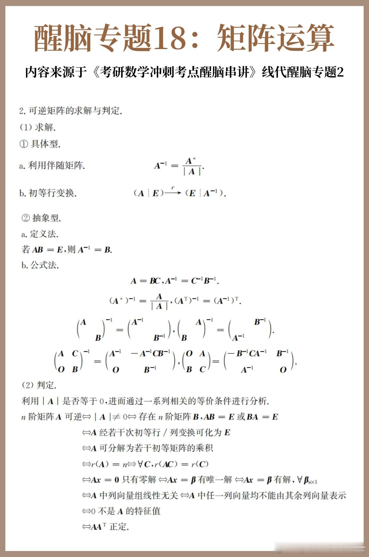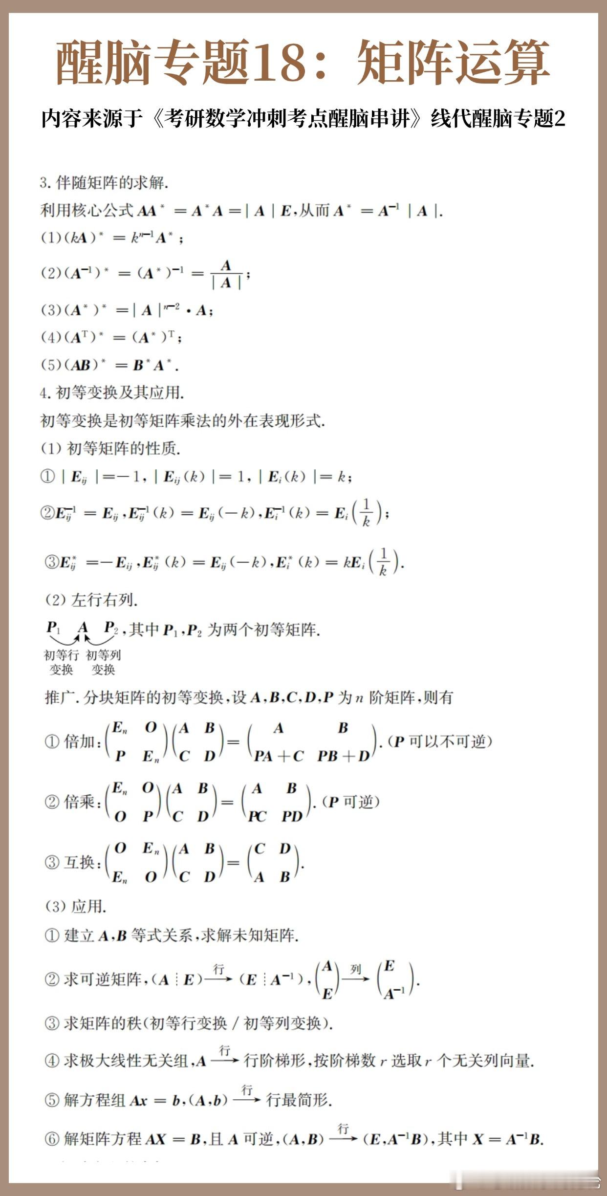 【D20】考研数学30天急救计划!【醒脑专题18】:矩阵运算30天30个核心专题,把数学重要的公式和考法总结回顾一遍!每天背一背,写一写,不负过往,终将上岸!决战考研 考研 考研数学