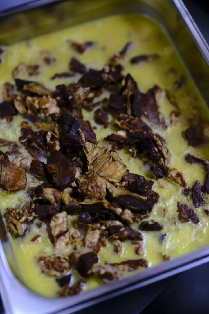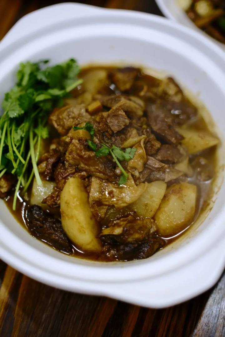 牛腩萝卜煲,牛腩用得好,则有奶香。萝卜用的是九堡本地老师傅种的萧山一点红,天越冷,萝卜越甜,水果一般。