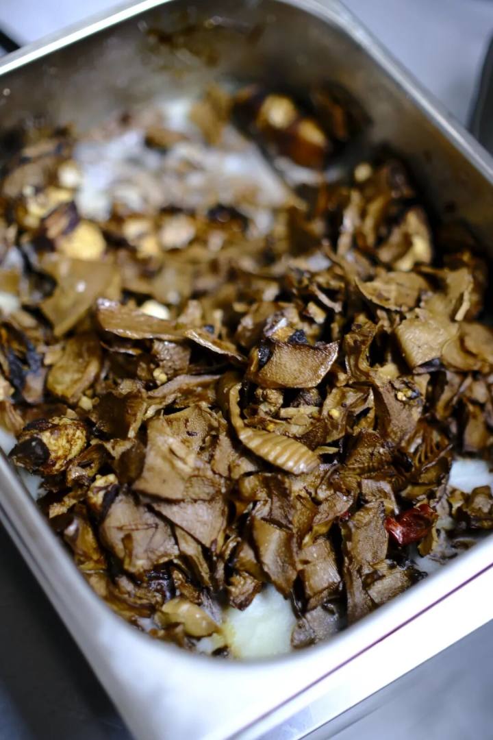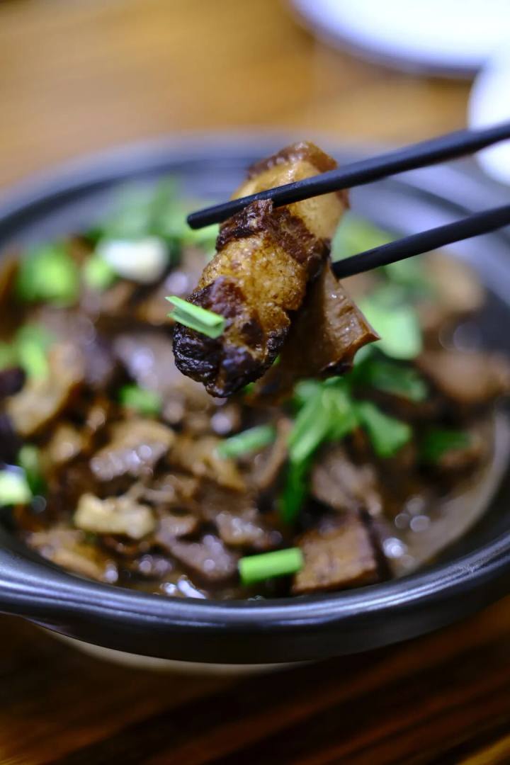 毛笋干烧肉,选用黄山毛笋干,王丙兆的老婆是皖南歙县人,毛笋干是从村里收来的,量有限,仅供自己店里用用。