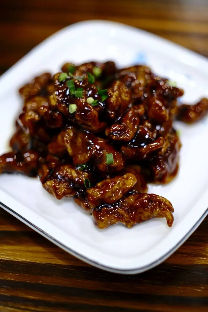 糖醋里脊,玻璃芡勾得灿烂,晶莹透亮,上桌趁烫吃,醋香撩人,酥壳嫩心。
