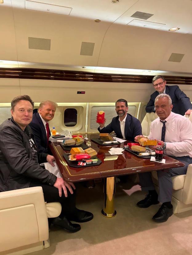 同时,这张原图被指疑为旧照,是2024年特朗普胜选后,特朗普儿子发布特朗普、马斯克等人吃快餐的图片。目前,小罗伯特·肯尼迪尚未回应照片是否为旧照。