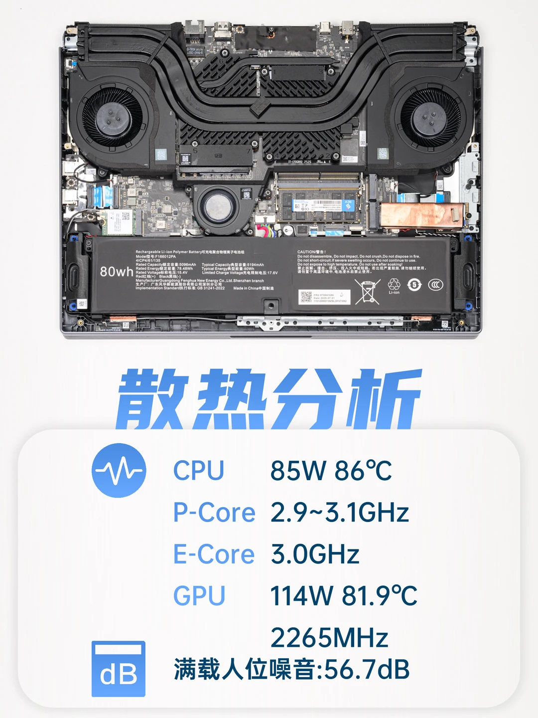 ❌高负载下,键盘热感面积较大
