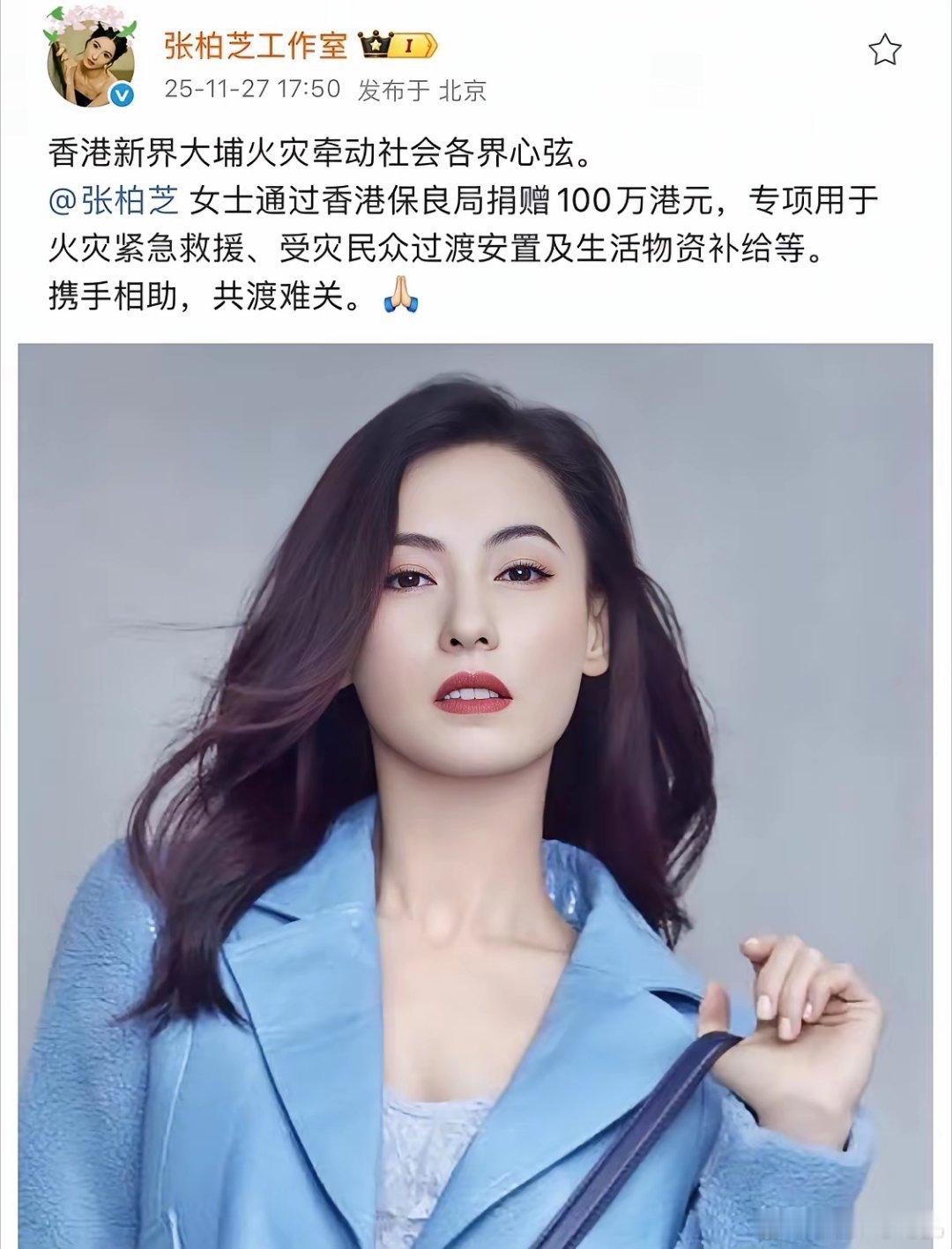 一个举动,让我们彻底看清张柏芝的人品。这次香港大火造成严重损失,张柏芝低调地捐赠了100万。张柏芝作为一个单亲妈妈,家里还有三个孩子要抚养,光学费之类的一年就要几百万;而且她2023年因身体原因暂停一切工作,2024年才开始重新回归事业。张柏芝一直都是一个很节俭的人,买牛仔裤都是买很便宜的,还被自己儿子“教育”了,就是这样一个人,依然慷慨地捐了100万。张柏芝早年的口碑真的被舆论带偏了,张柏芝从来都是做的比说的多,这两年回归终于被大家看清,张柏芝一直都是很好的一个人。你喜欢她吗?