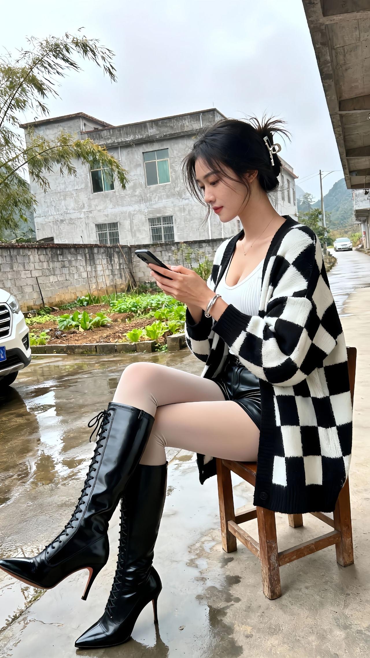 第1期穿搭分享 这套穿搭是**“甜酷松弛风”**的典型搭配,把慵懒和性感平衡得很妙~ 核心亮点在「元素对冲」: • 软:棋盘格开衫自带慵懒松弛感,紧身白背心+浅色系丝袜又添了柔美感; • 硬:亮面皮革短裤+绑带高跟长靴,用皮质的利落和长靴的锐利,中和了开衫的软,同时长靴把腿部线条拉满,显高又有气场。简约松弛风穿搭 随意松弛感穿搭 简约松弛感穿搭