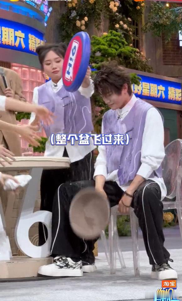丁禹兮丁禹兮被宋茜泼成这样你好星期六 泼水环节名场面!宋茜泼丁禹兮快准狠,最后甩盆,何炅接梗直击笑点~