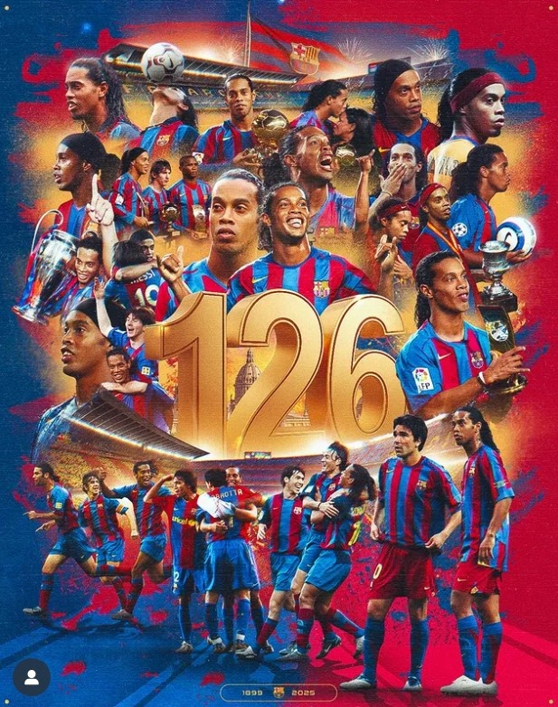 直播吧11月29日讯今天是巴萨成立126周年纪念日,罗纳尔迪尼奥更新社媒,为巴萨庆生。