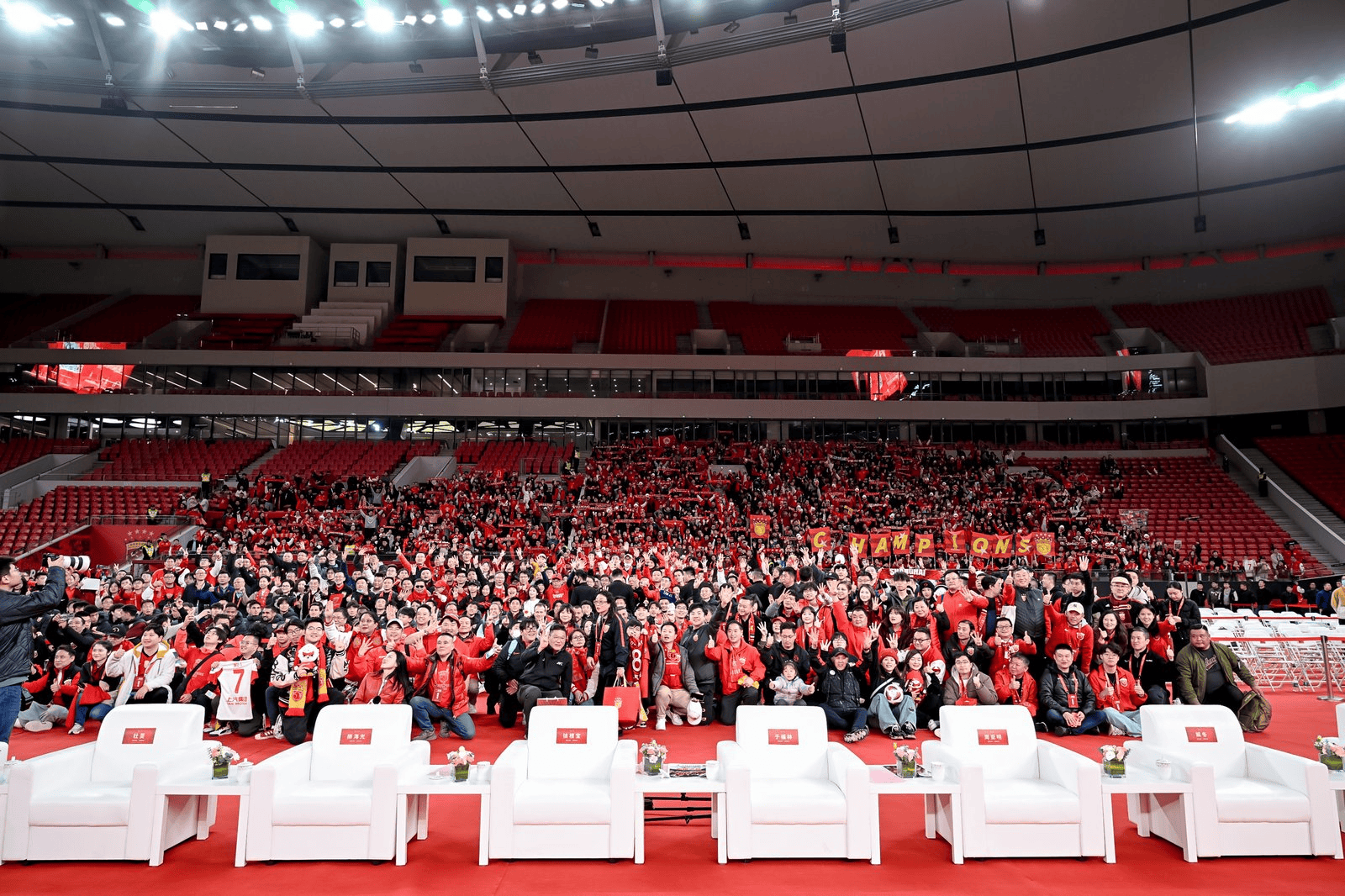 今天,上海海港足球俱乐部在主场上汽浦东足球场召开“海港三连冠四星耀申城”赛季总结会。包括上海市人民政府、浦东新区人民政府和上海市体育局多位领导莅临。此外,上港集团党委书记于福林、著名教练徐根宝、上海市足球协会主席柳海光,上海海港足球俱乐部董事长张敏,上海海港一线队主教练穆斯卡特,以及一线队全体教练员、球员、工作人员,还有众多一路相伴的球迷、媒体和赞助商代表共同参与。