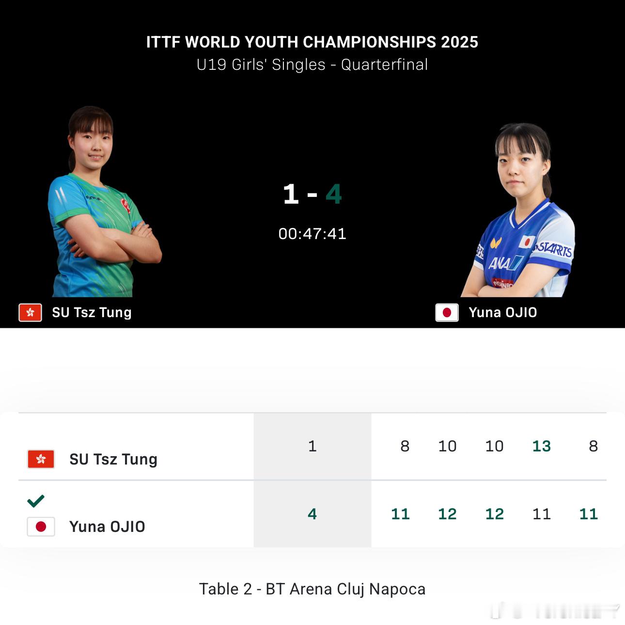 2025世青赛U19男女子单打8-4李和宸4-0本雅明小盐悠菜4-1苏籽童连续两