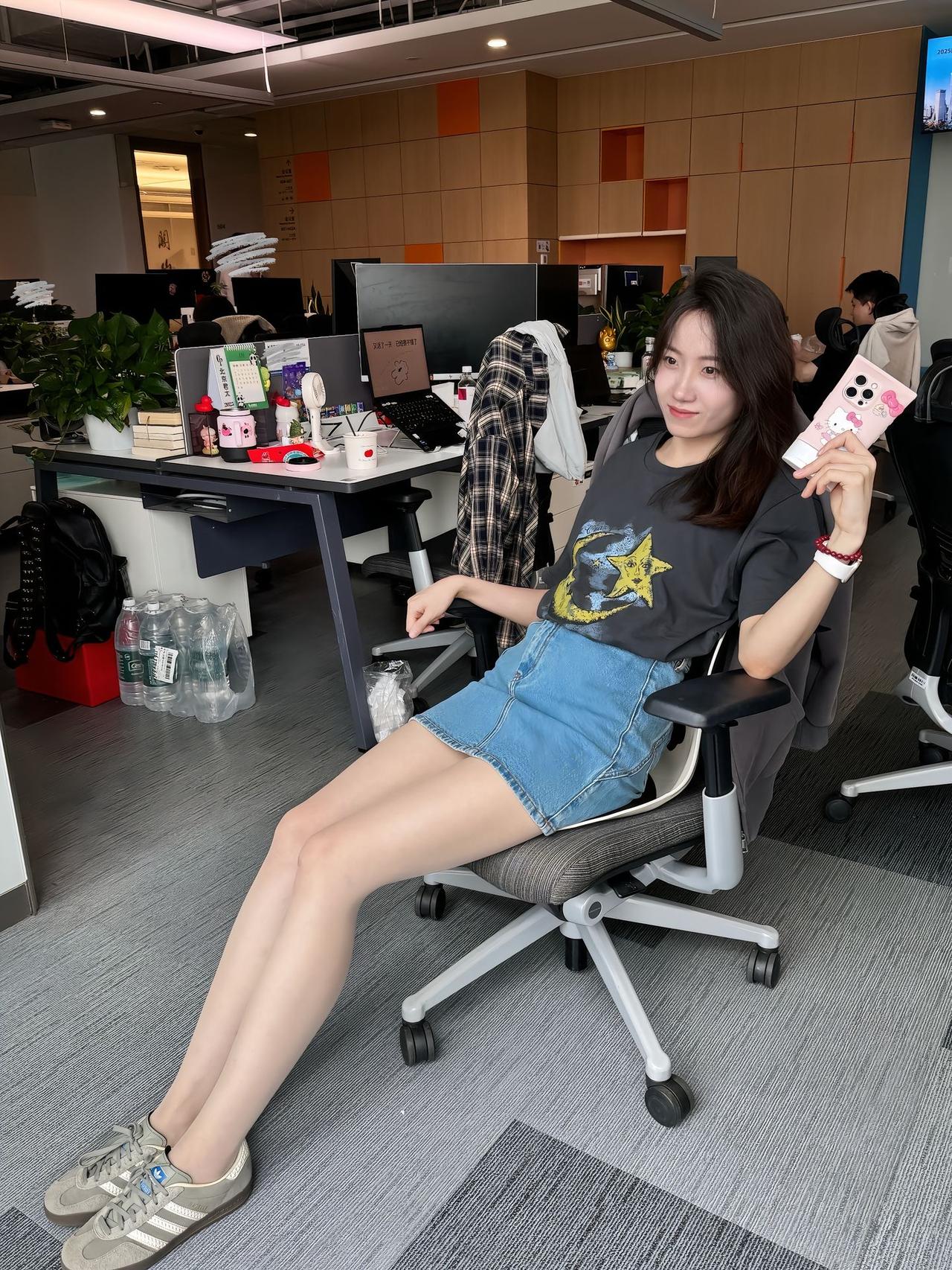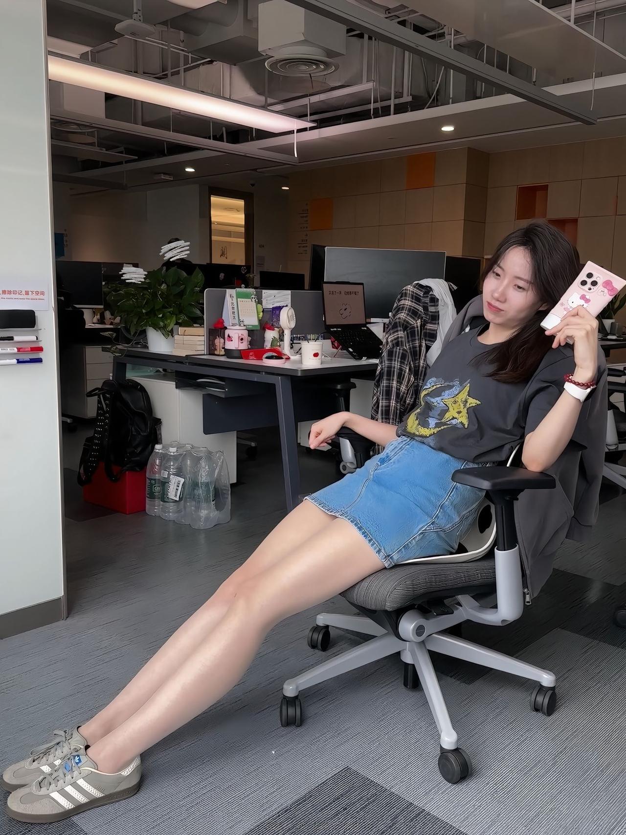 轻松一刻,办公桌前的悠闲时光
