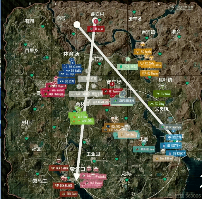 决胜时刻,信号圈缩在战地医院附近,圈内剩余DK战队、SUP战队和goat战队,此时场上4v4v2。goat战队先被淘汰,随后剩余两队展开对战,SUP战队率先倒人,DK战队凭借人数优势淘汰SUP战队最后一人拿下比赛,DK战队获得本场比赛胜利。