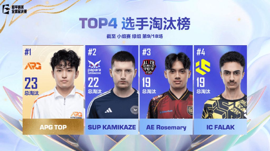 16分钟,Tianba-Aching势不可挡近点一穿三淘汰对手。决胜时刻,信号圈缩在研究所附近,圈内剩余AE战队、IC战队和goat战队,此时场上4v1v2。IC战队独狼先被淘汰,随后剩余两队展开对战,goat战队最后一人被手雷淘汰,AE战队获得本场比赛胜利。