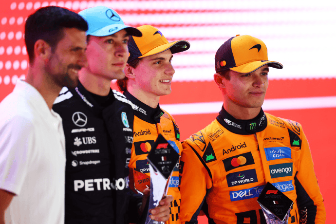德约科维奇为F1卡塔尔冲刺赛前三名车手颁奖
