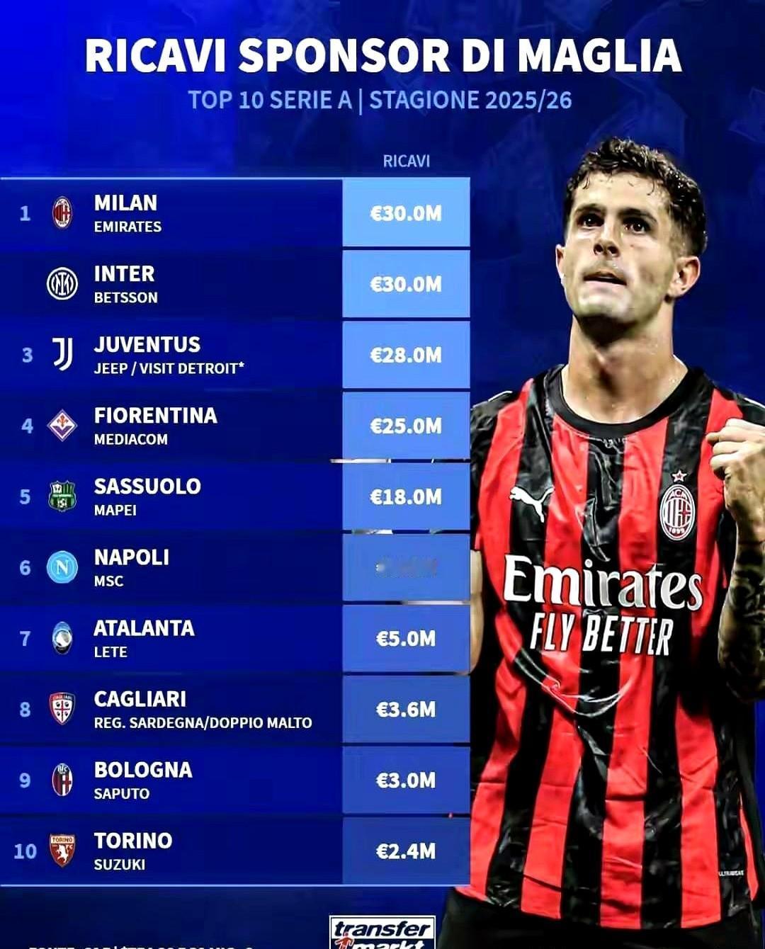 意甲赞助收入榜刚出,国米这波操作直接让球迷看呆了! 和AC米兰并列意甲第一,都是3000万欧赞助费,尤文2800万排第三——国米比尤文还多200万!要知道尤文有自建球场,国米没这优势还能反超,品牌魅力真的顶! 往前数几年,国米和倍耐力合作时赞助额才1000万,现在直接翻三倍!这哪是数字涨,明明是全球影响力和运营能力质的飞跃啊! Forza Inter!国米这吸金速度,真能打!意甲收入