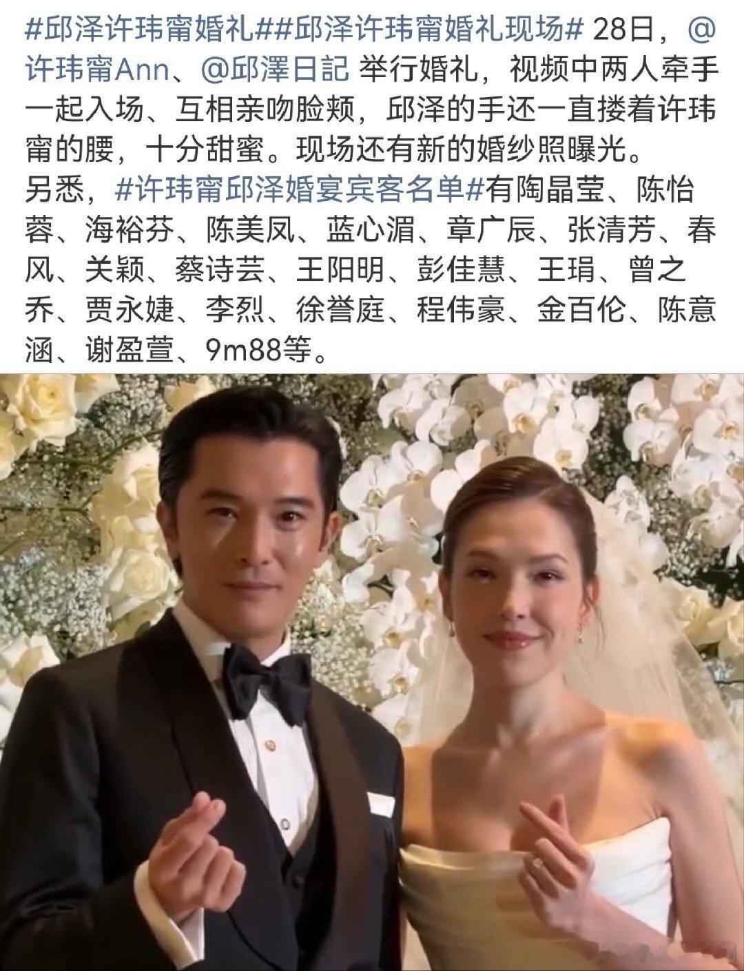 林心如在邱泽许玮甯婚礼光脚跳舞林心如霍建华出席邱泽许玮甯婚礼|林心如还亲亲许玮甯,大家真好! 邱泽许玮甯儿子也以最小的嘉宾身份来参加婚礼,宝宝以后肯定特别好看!据悉,许玮甯邱泽婚宴宾客名单有陶晶莹、陈怡蓉、海裕芬、陈美凤、蓝心湄、章广辰、张清芳、春风、关颖、蔡诗芸、王阳明、彭佳慧、王娟、曾之乔、贾永婕、李烈、徐誉庭、程伟豪、金百伦、陈意涵、谢盈萱、9m88等