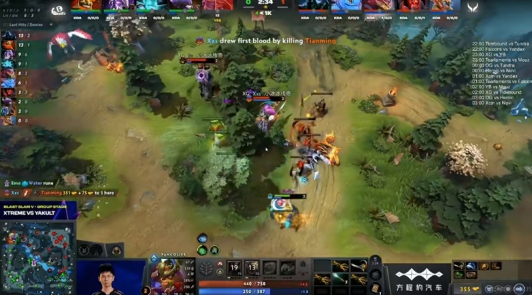 [11分钟]上路flyfly蓝猫拉扯对位单杀掉了Ame亚巴顿,不过中路xNova老奶奶大招配合帕克大招找到机会,切死了Emo紫猫+天命亚巴顿!不过回头Ame的亚巴顿TP下路再次被抓,XG支援反打换掉了YB双酱油!