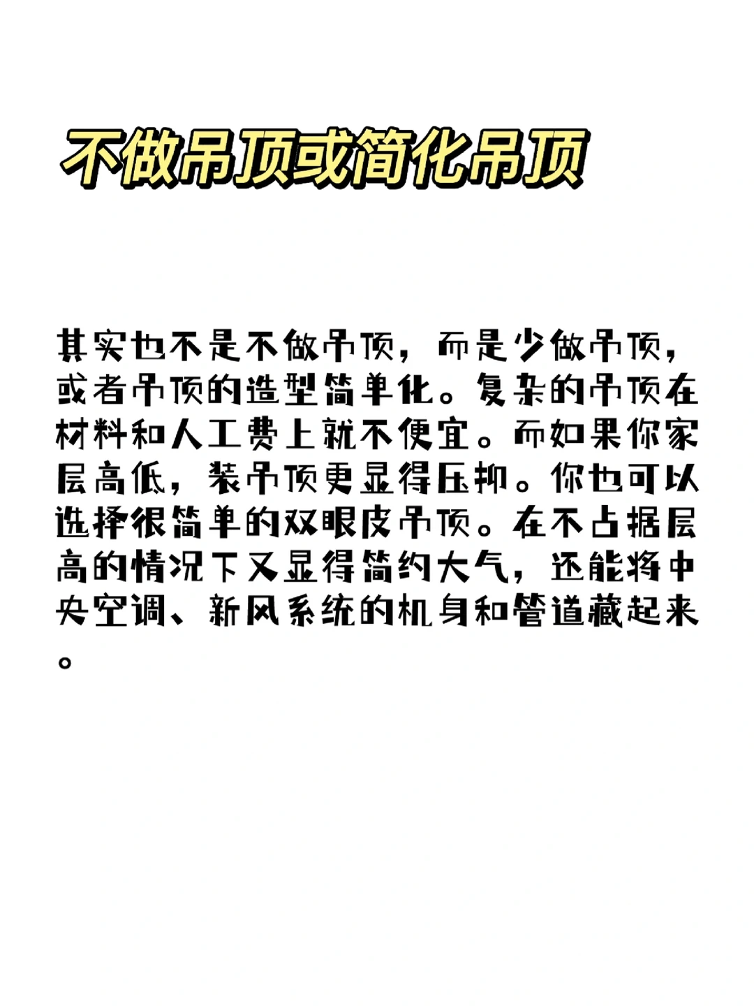 装修时如何花最少的钱达到更好的效果,是所有业主与装修专业人士都在共同追求的目标。每每装修完才发现,做了好多不实用又不好看的设计。当初怎么就没有想到把这笔钱用在更合适的地方,或者直接省下来呢?那下面就为大家盘点一下装修时的省钱攻略,别跟钱过不去哦,要把每一分钱都花在刀刃上![赞R][赞R][赞R]