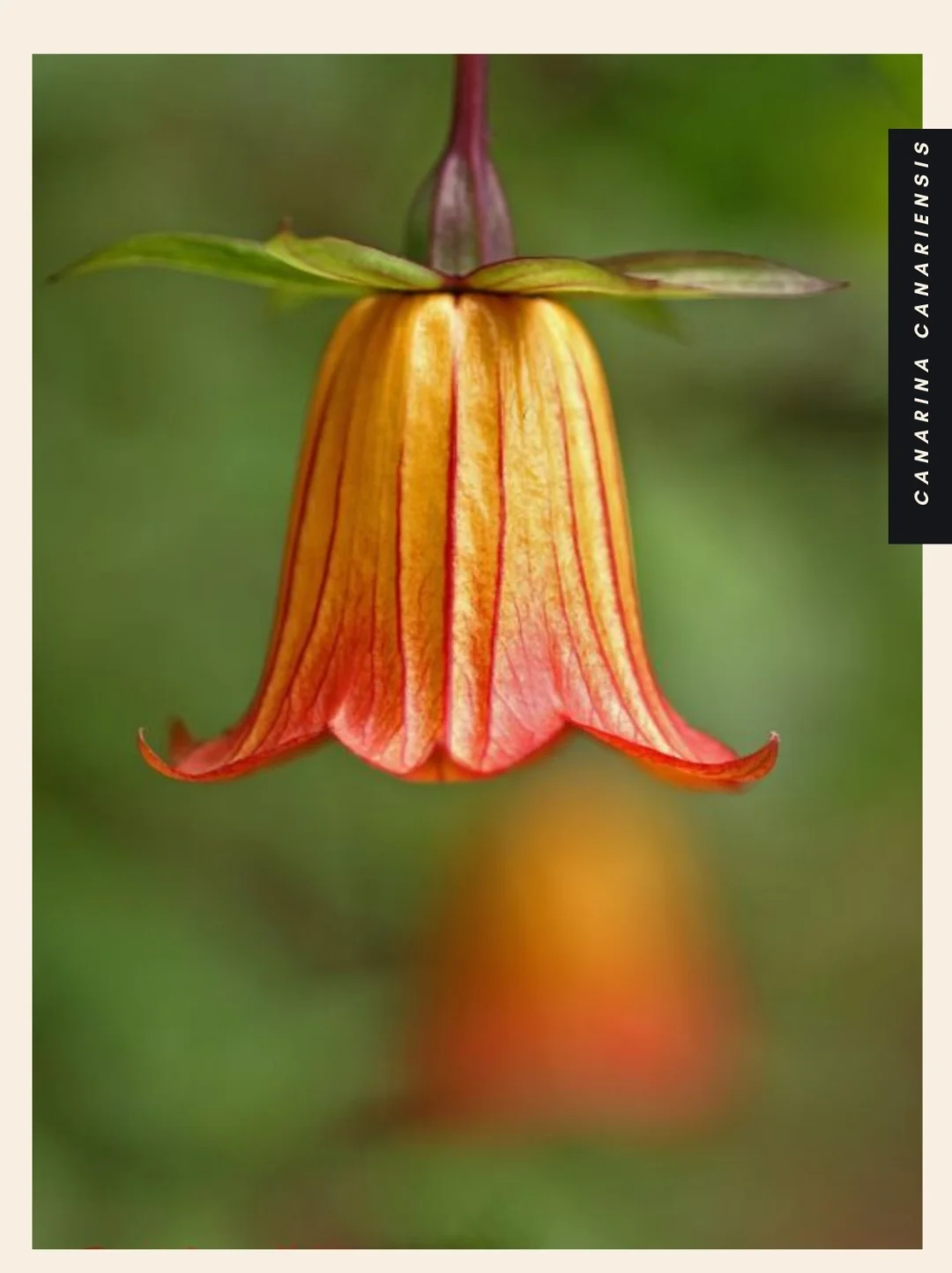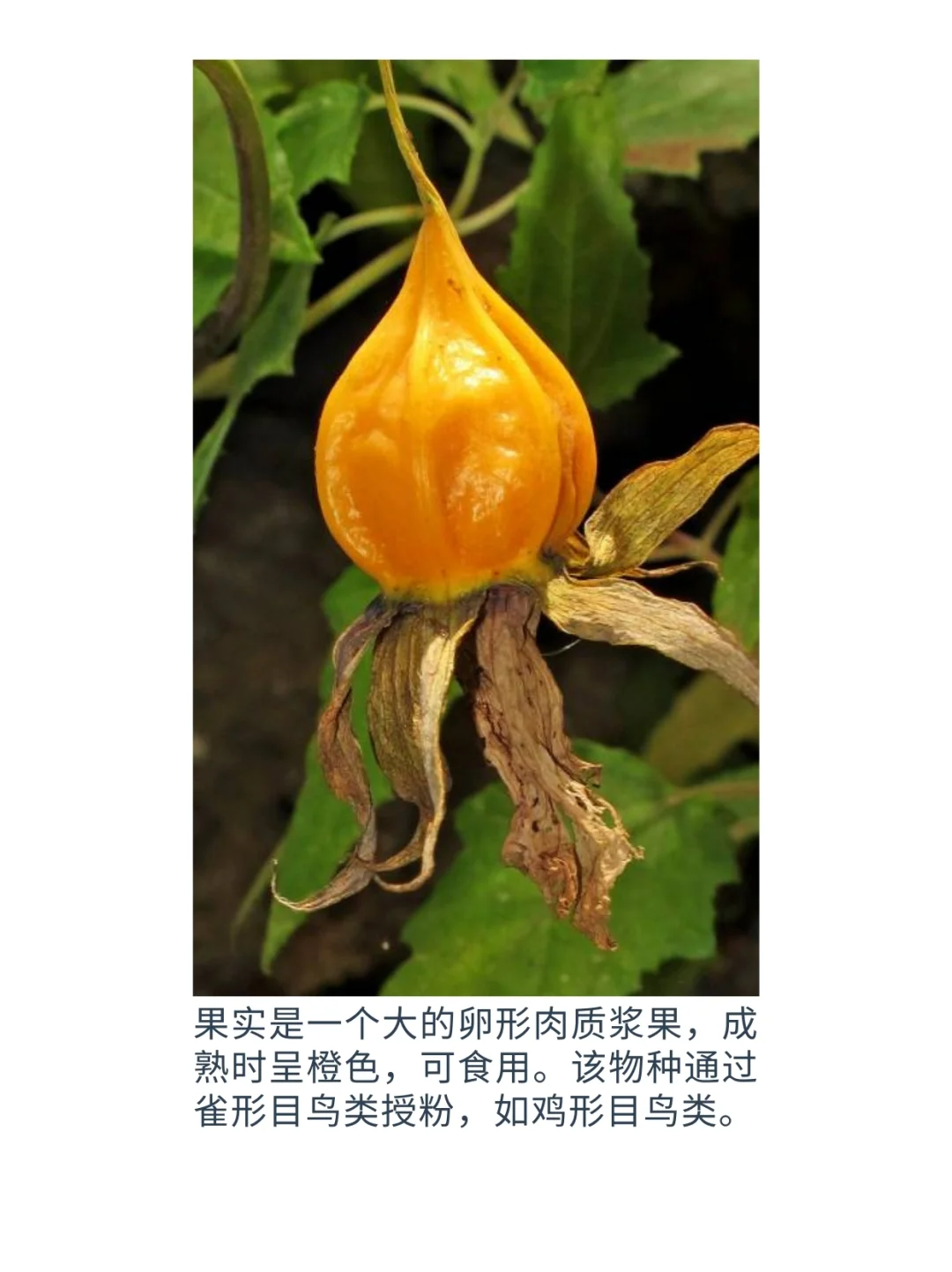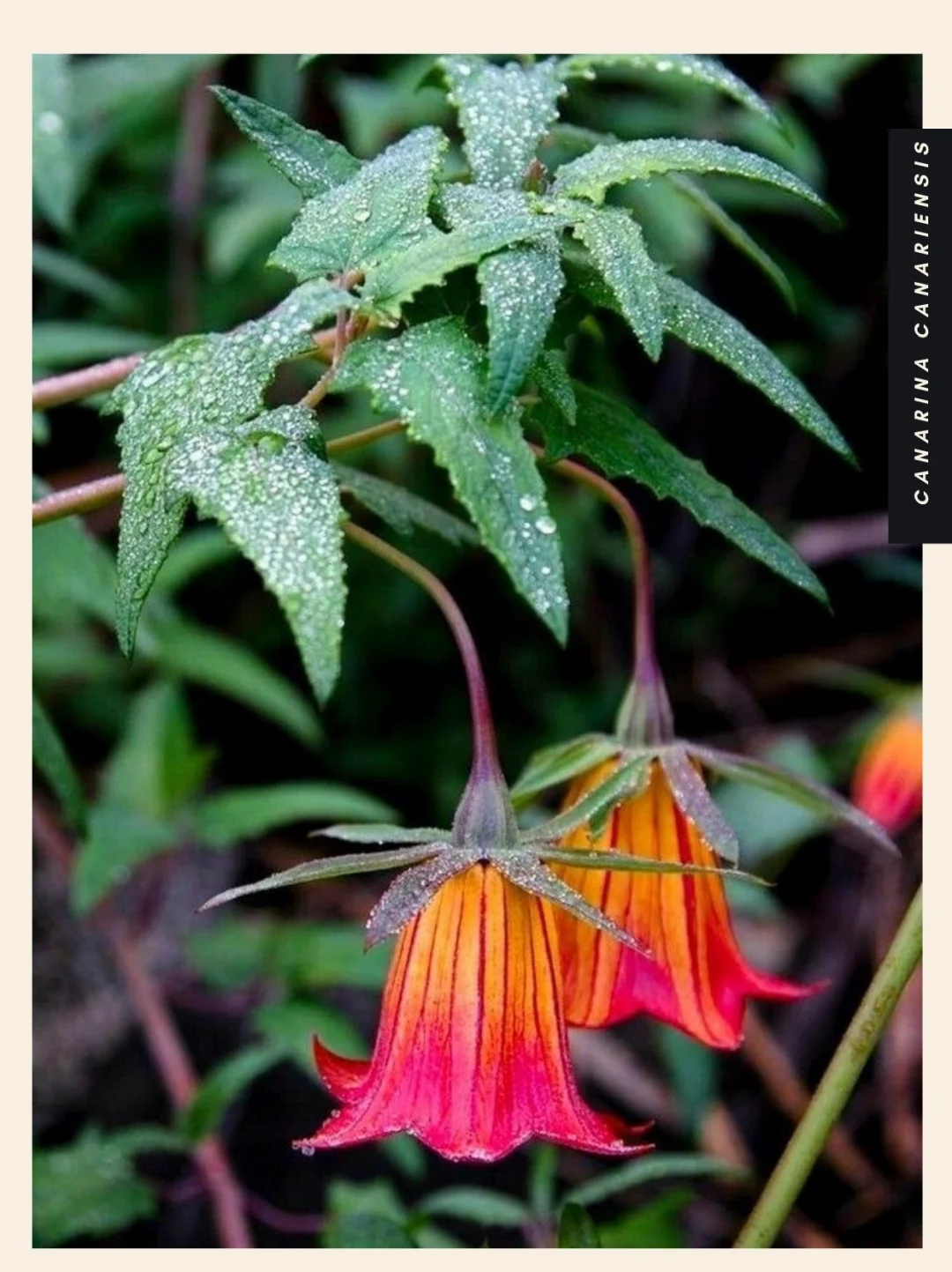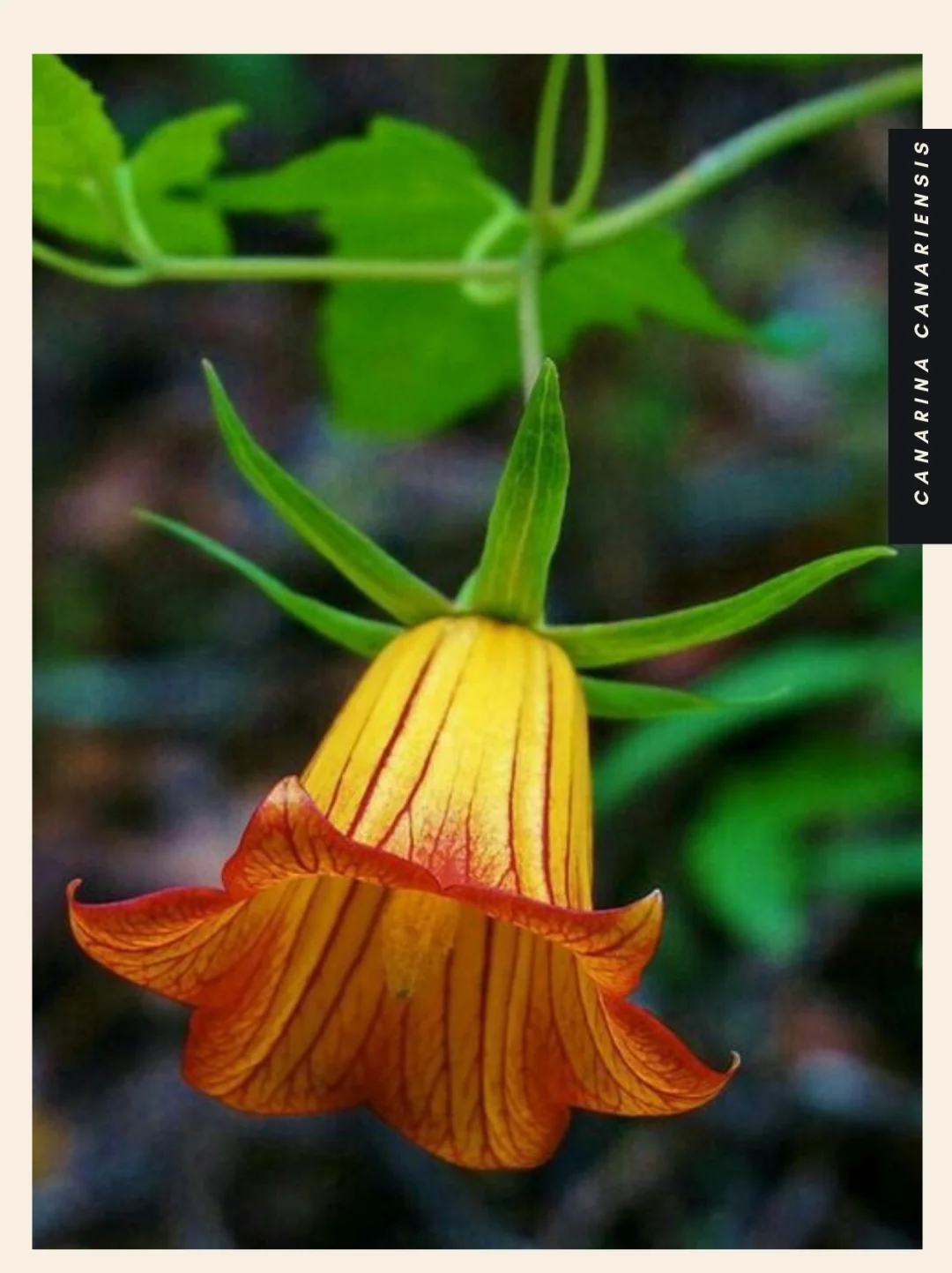 j花园植物 藤本植物 莺风铃 Canarina canariensis 桔梗科 加纳利 浆果 可食用 食用浆果 莺风铃Canarina canariensis,是桔梗科莺风铃属的一种开花植物,俗称加那利岛钟花,当地人称之为比卡卡罗bicácaro。