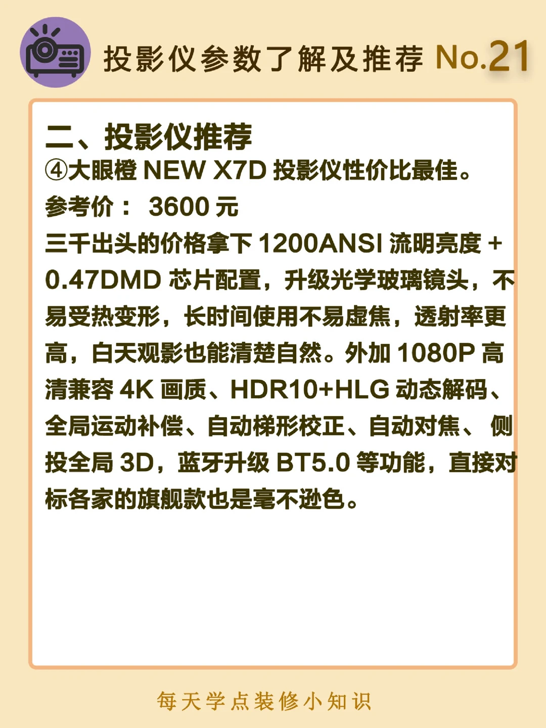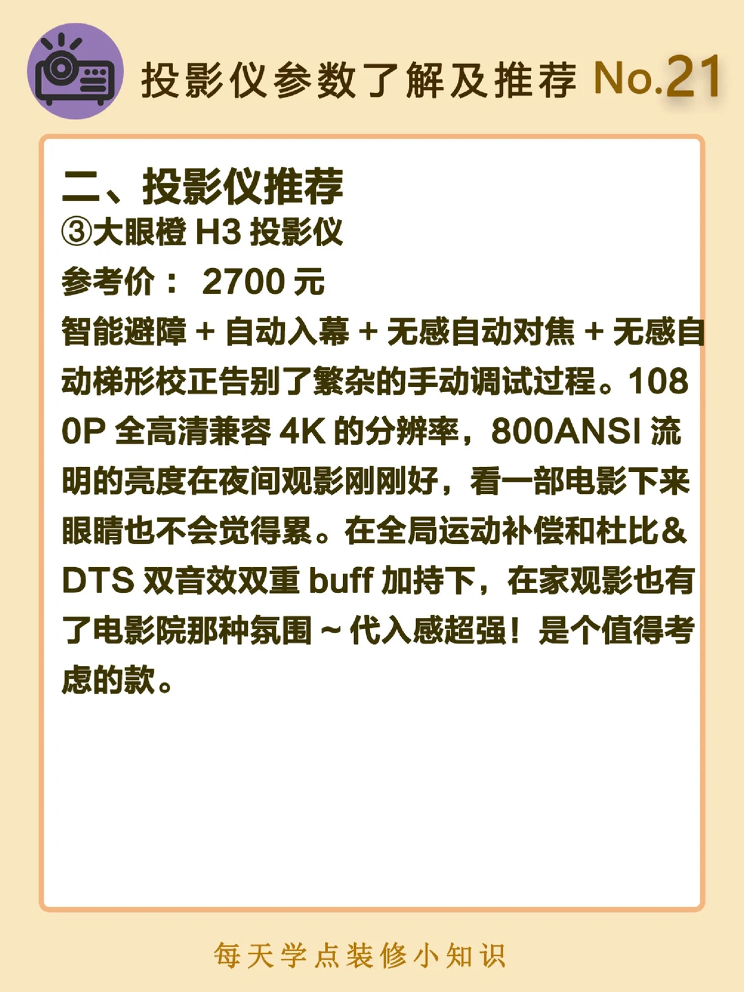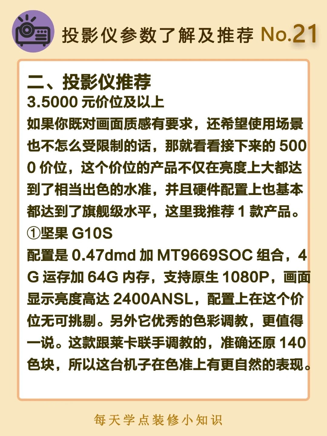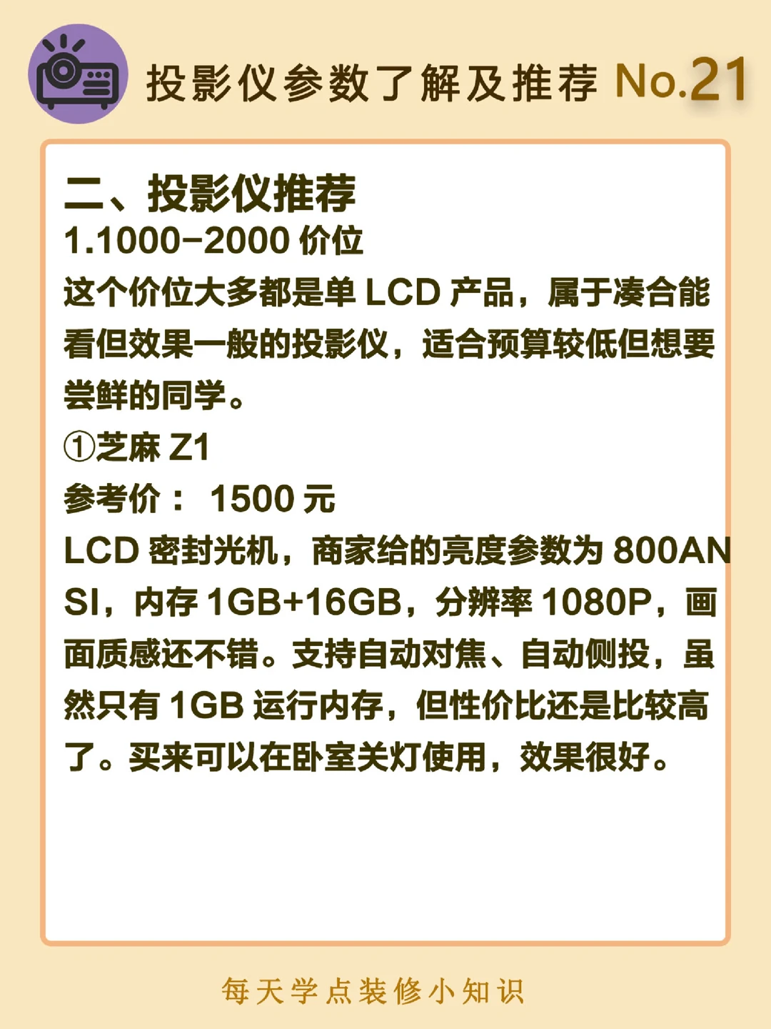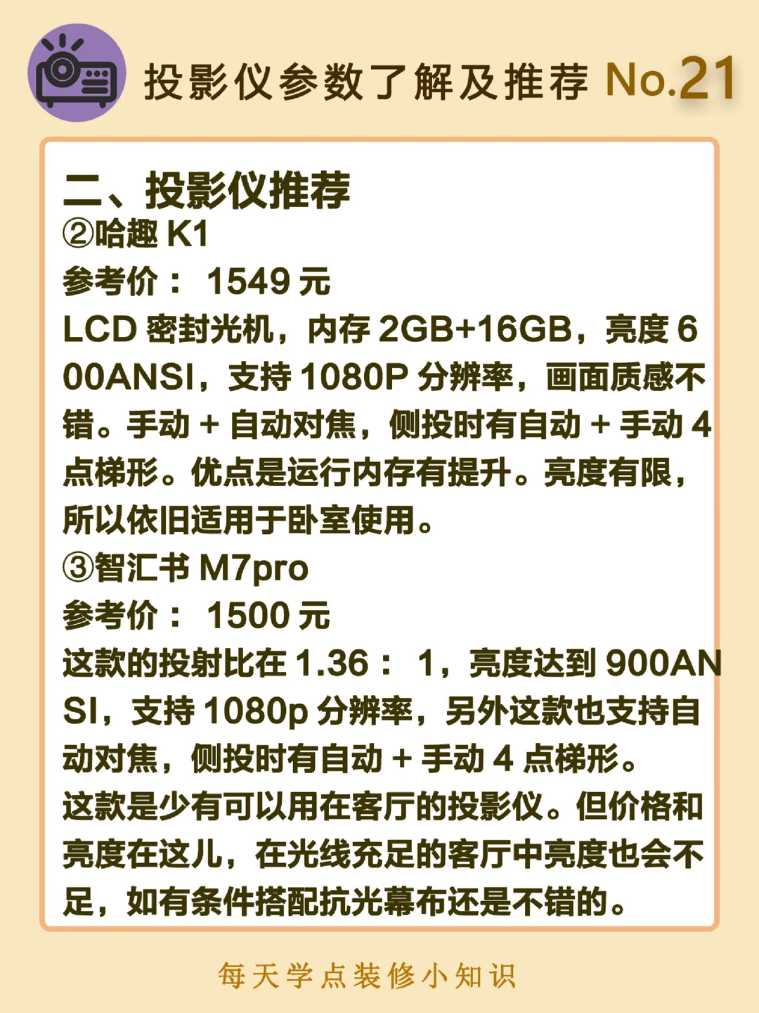 课代表总结的投影仪推荐🔥 1、1000至2000价位 ①芝麻Z1 参考价:1500元 ②哈趣K1 参考价:1549元 ③智汇书M7pro 参考价:1500元 2、3000-5000元价位 ①坚果G9S 参考价:2999元 ②极米new Z6X 参考价:3099元 ③大眼橙H3投影仪 参考价:2700元 ④大眼橙NEW X7D投影仪 参考价:3600元 ⑤腾讯极光投影P2 参考价:3800元 3、5000元价位及以上 ①坚果G10S