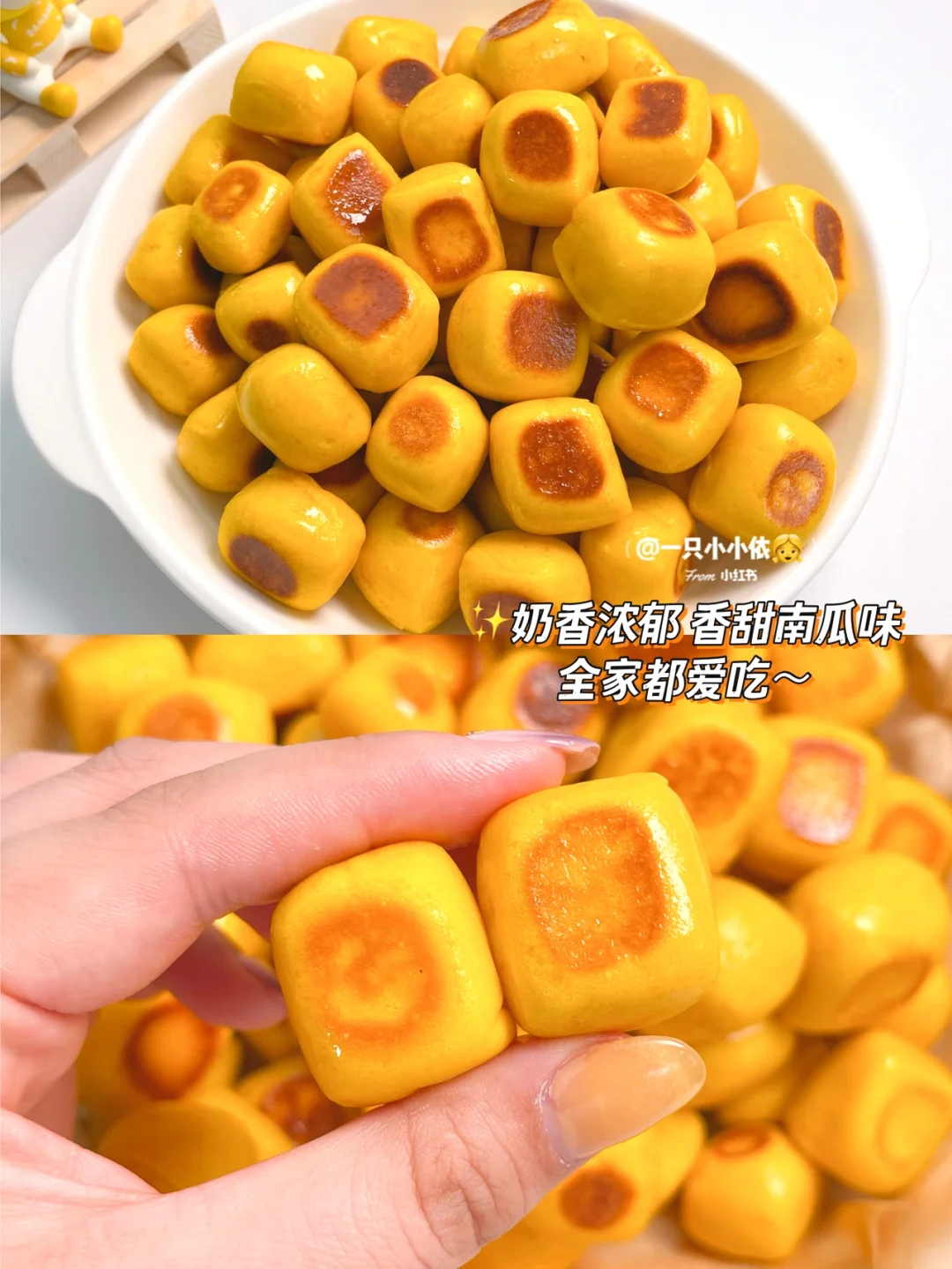 👧依依是各种面包的迷妹,前两天给她做了奶香南瓜小面包,一口一个停不下来~