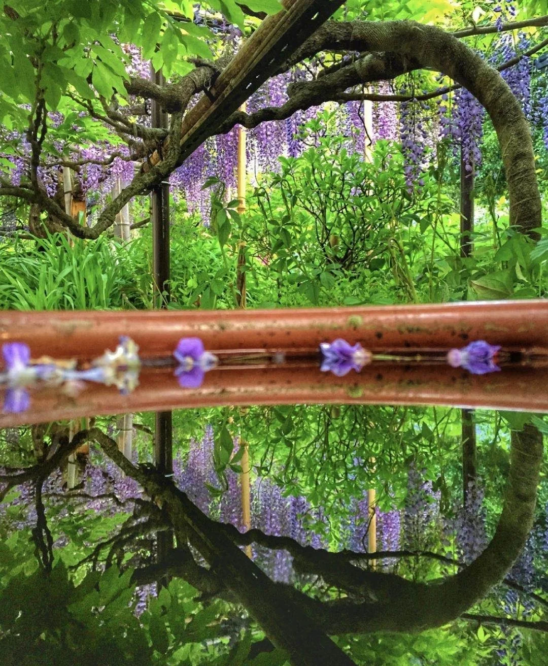 🌈又是因为爱花,追寻着紫藤的踪迹来的。这里的九尺紫藤可以说是很有名了(因为藤穗长,取名九尺)~我估摸了一下,足足有1.5米长了吧!如瀑布倾泻而下,梦幻而震撼~