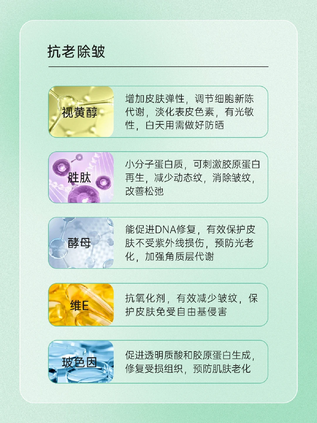 💚控油抗痘 💙补水保湿 💜修复肌肤 💛美白淡.斑 ❤️抗老除皱 ✅五大功效,多种成分一网打尽 一起来了解一下吧,下期还想看什么可以❤➕🍎告诉我哦