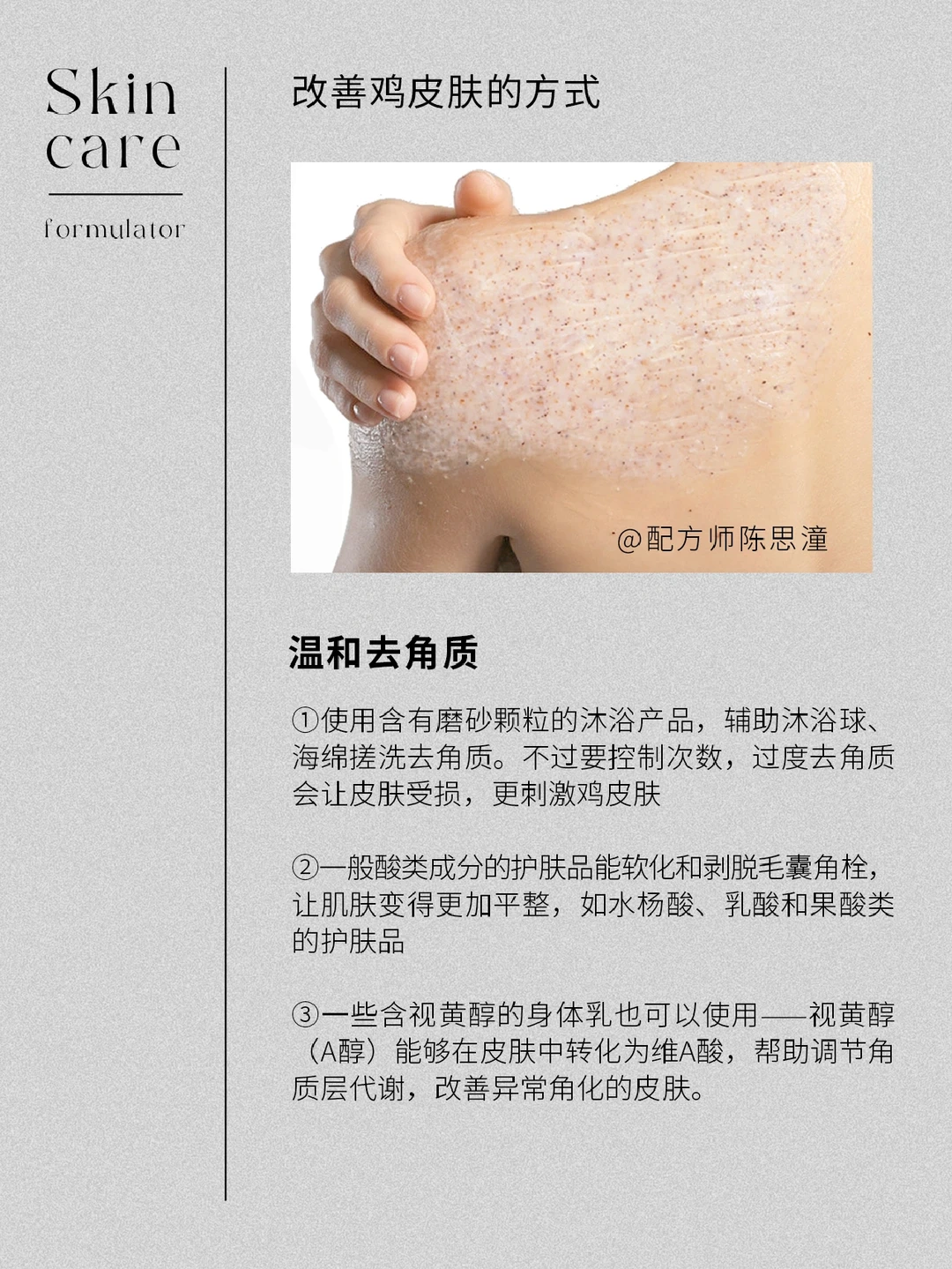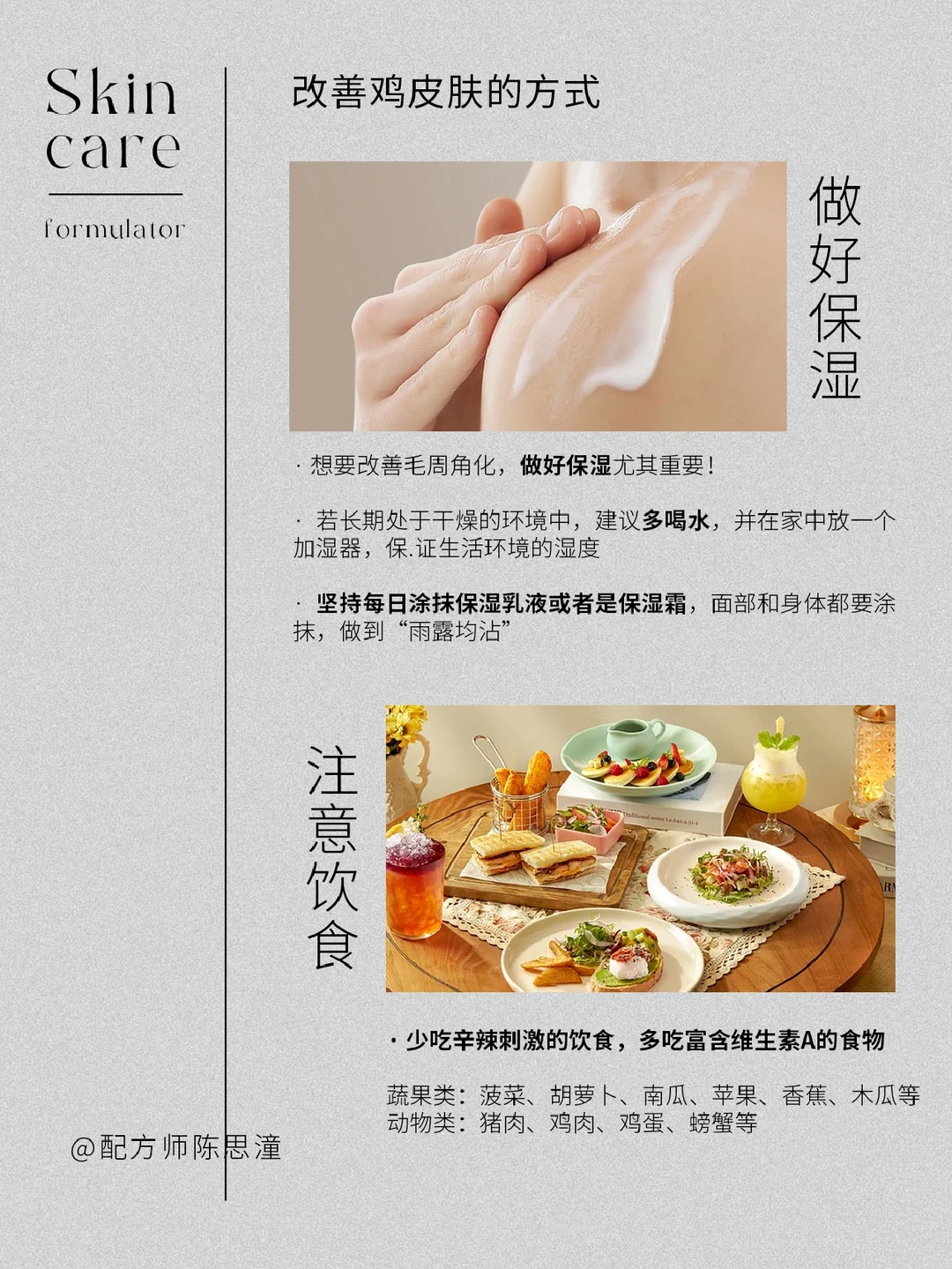 • “鸡皮肤”是什么? • 为什么会长出鸡皮肤? • 鸡皮肤的注意事项 • 改善鸡皮肤的方式 一起来了解一下吧,下期还想看什么可以❤➕🍎告诉我哦